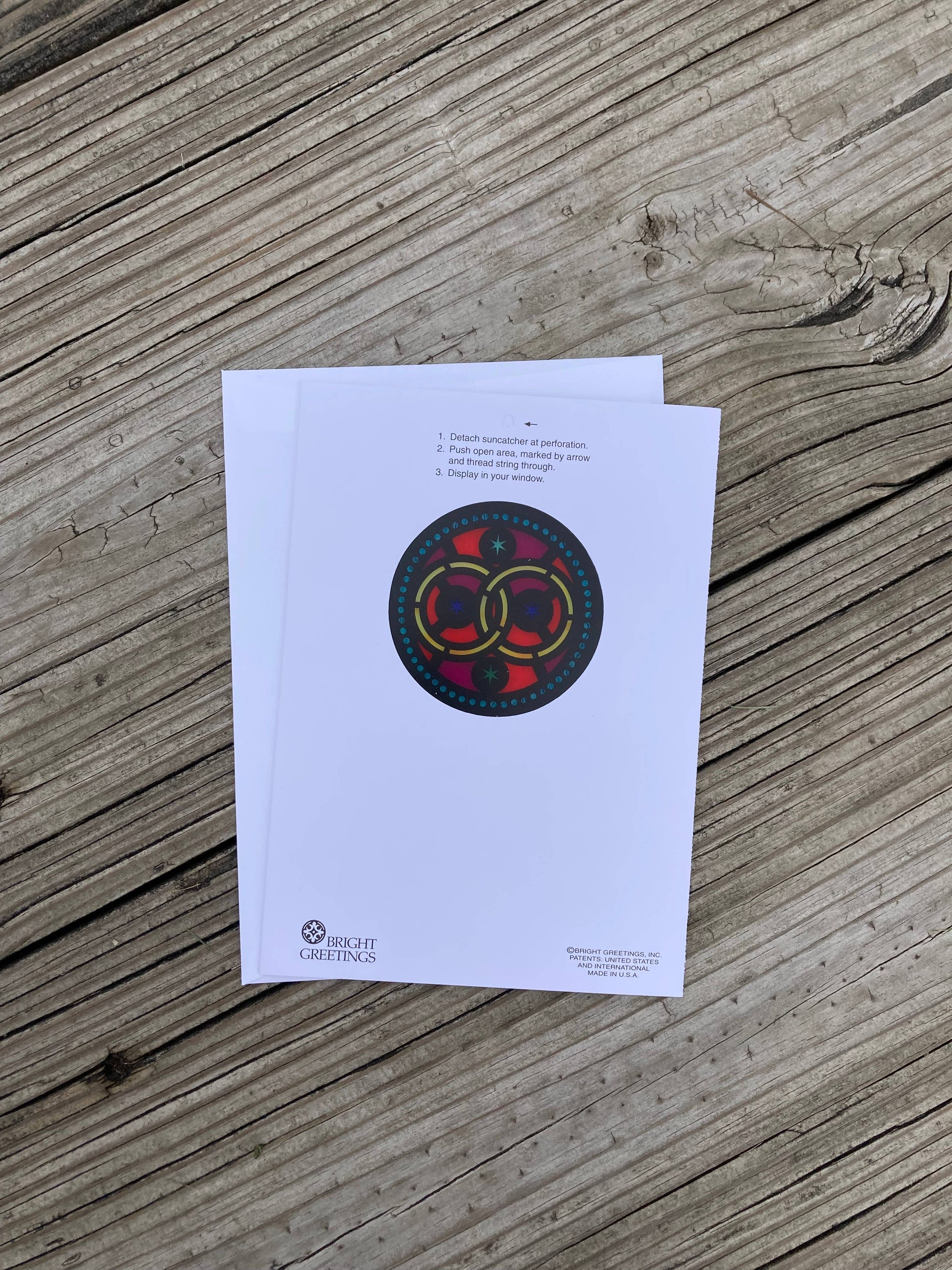 Bright Greetings - Anniversary stained glass Rings sun-catcher card