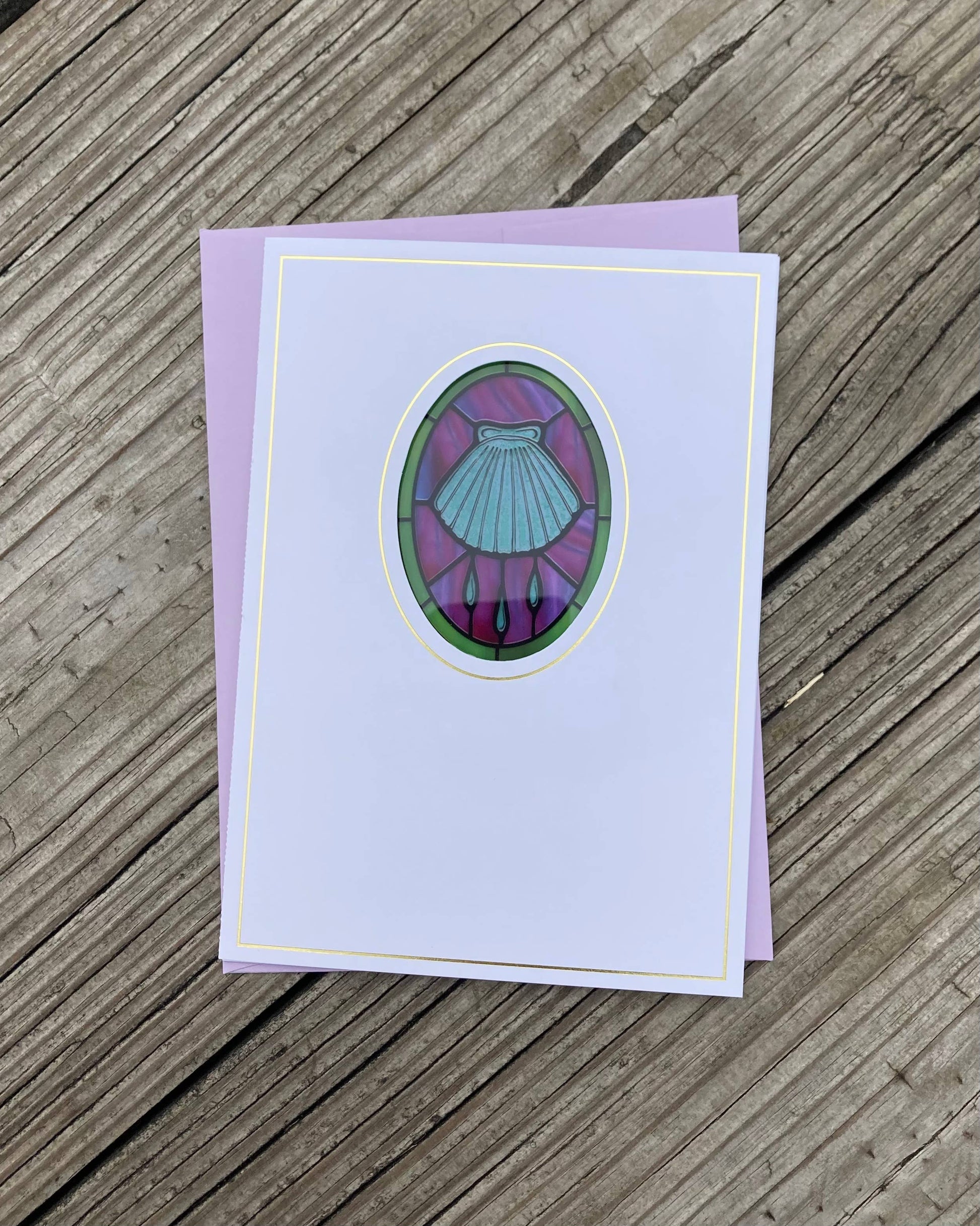 Bright Greetings - Baptism shell suncatcher greeting card with scripture 5x7