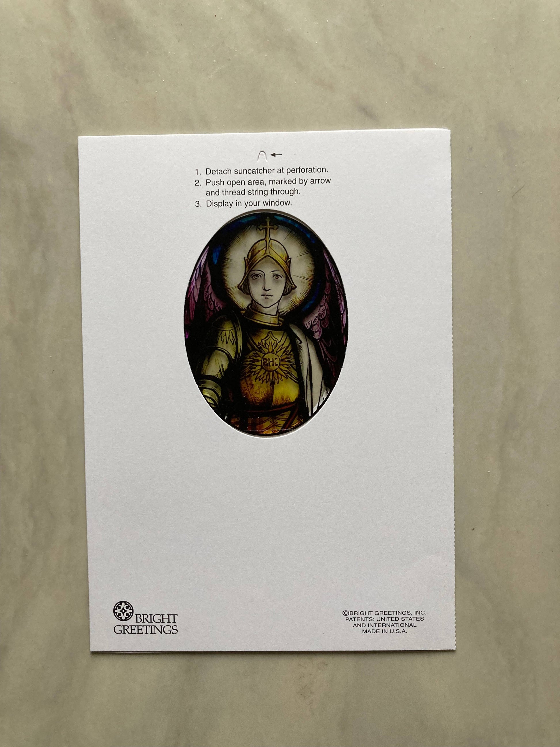 Bright Greetings - St. Michael sun-catcher greeting card Christian image