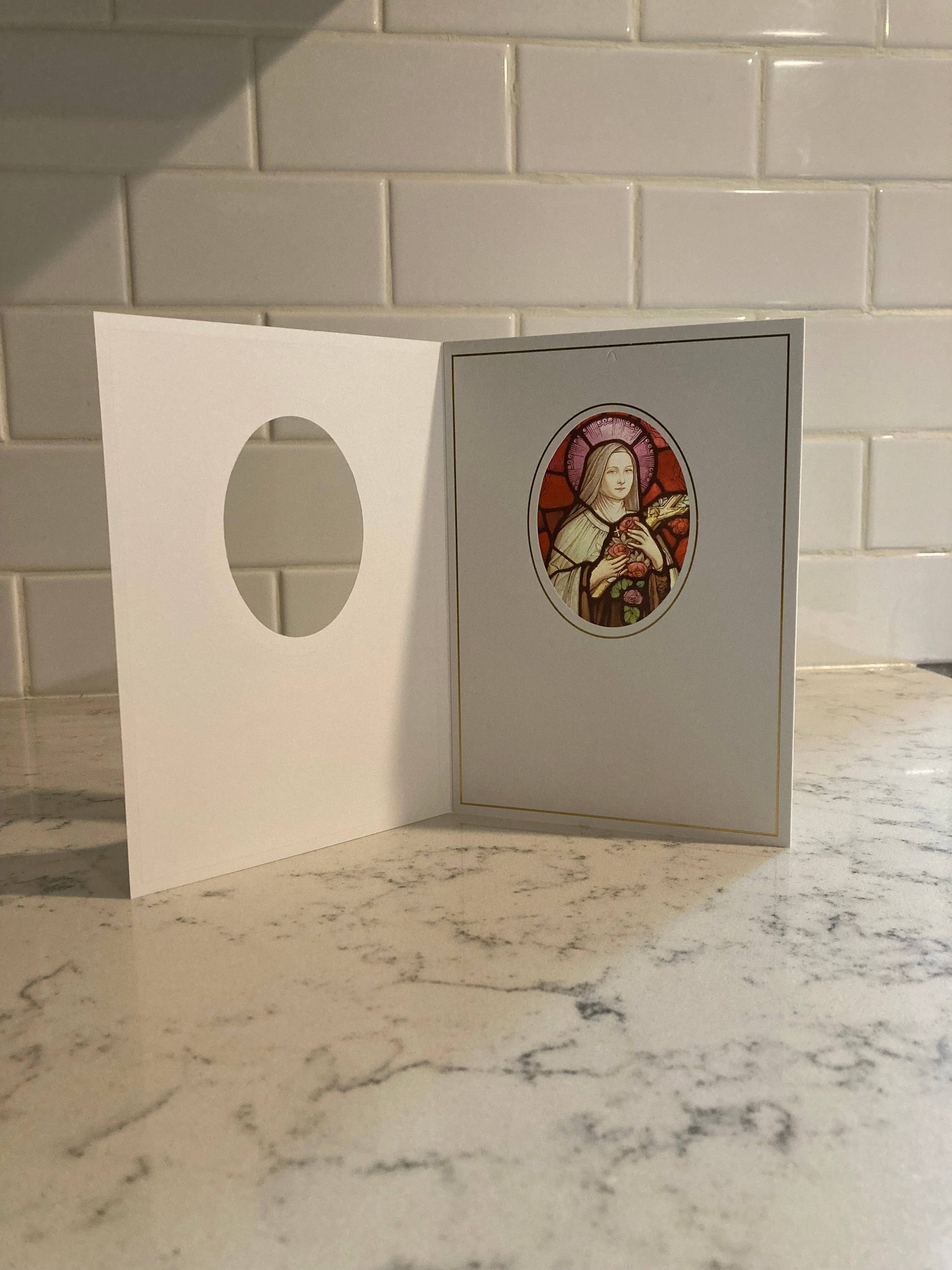 Bright Greetings - St. Therese of Lisieux 5x7" suncatcher card | Patron Saint o