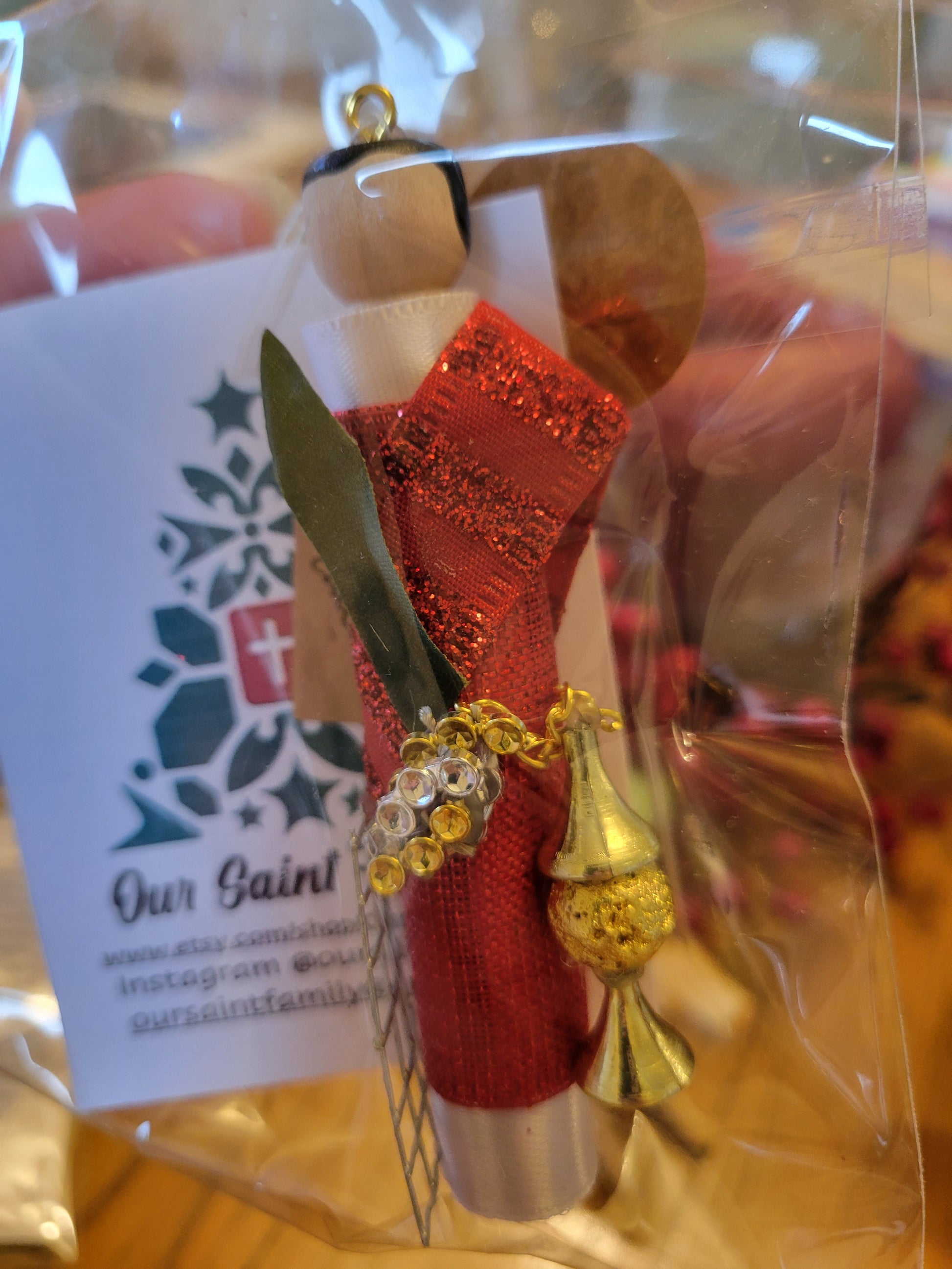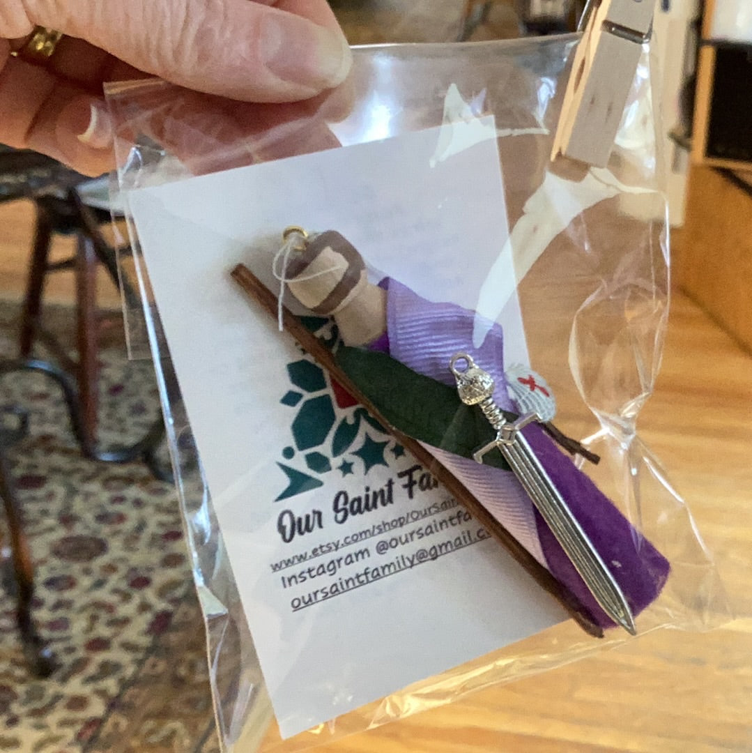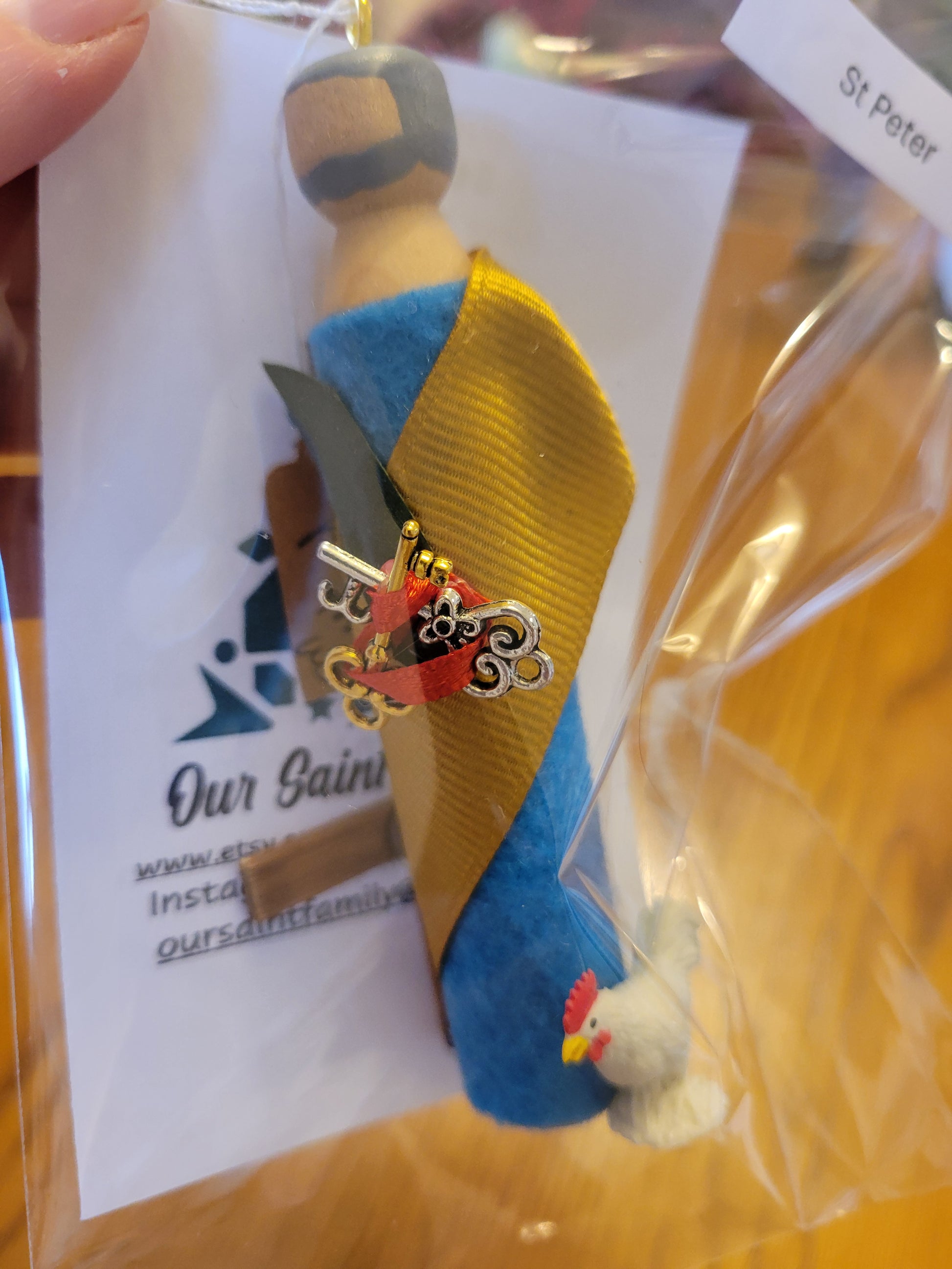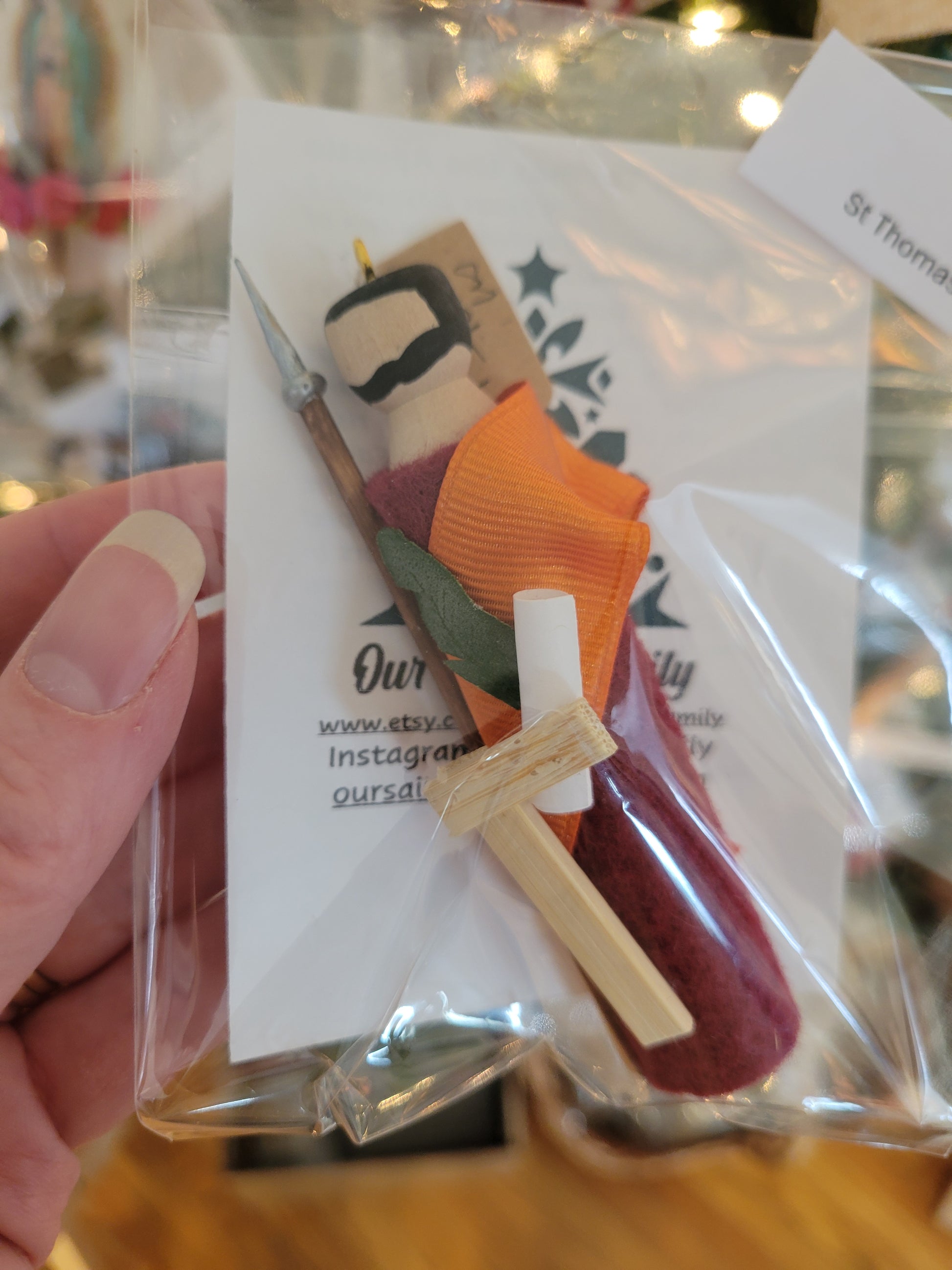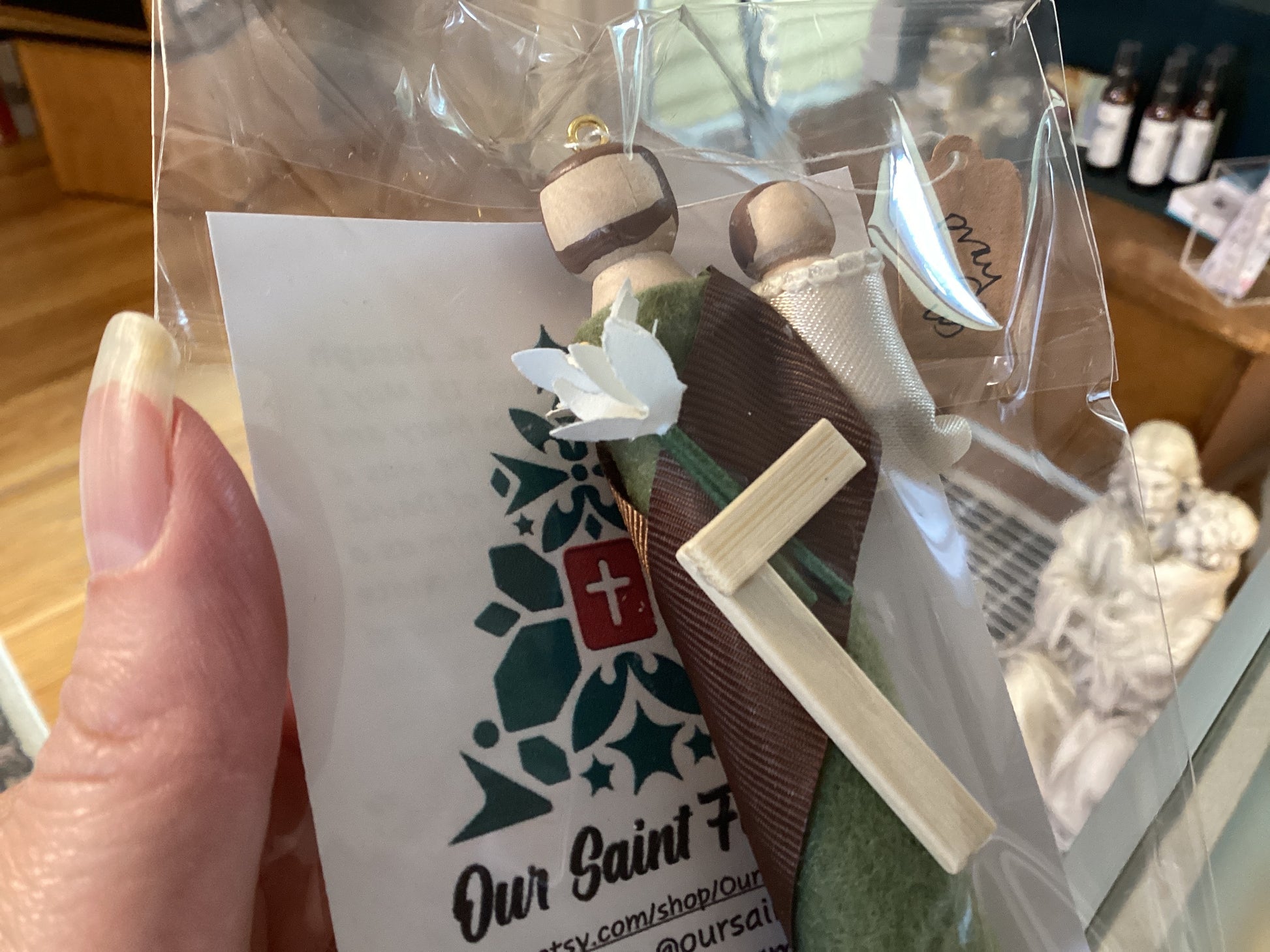 Each one is handmade locally. There are over 360 designs. Comes with card explaining who the saint was. We can order designs not currently stocked.