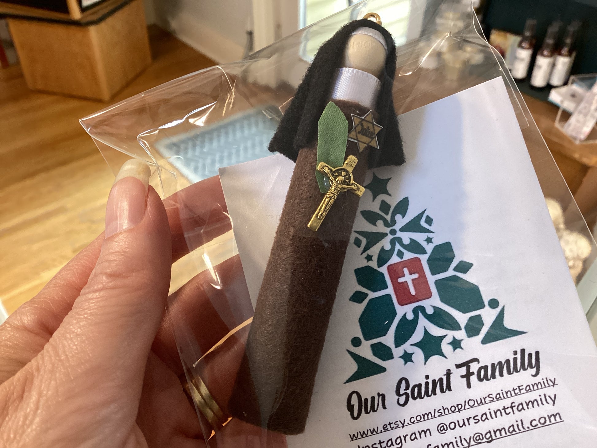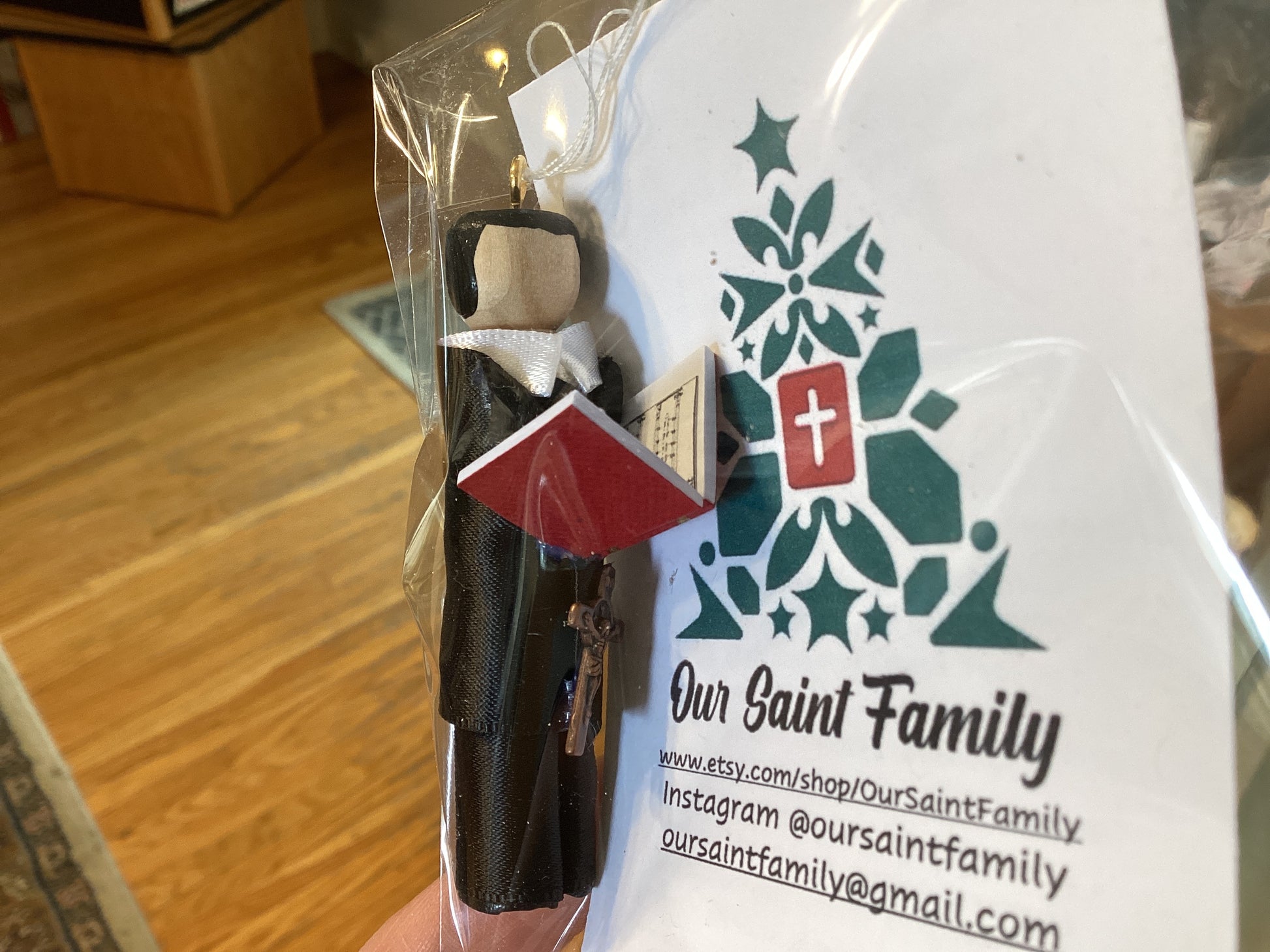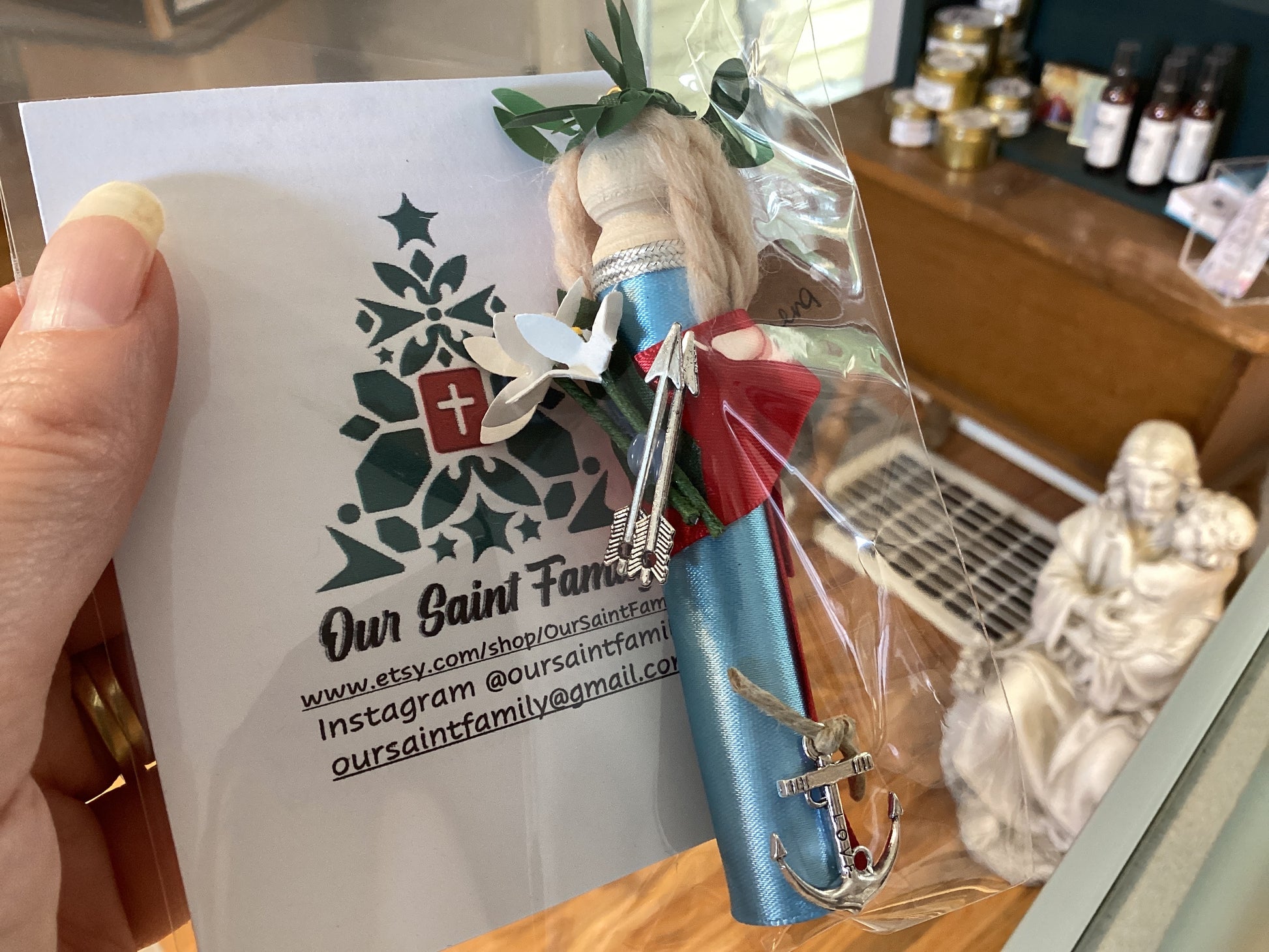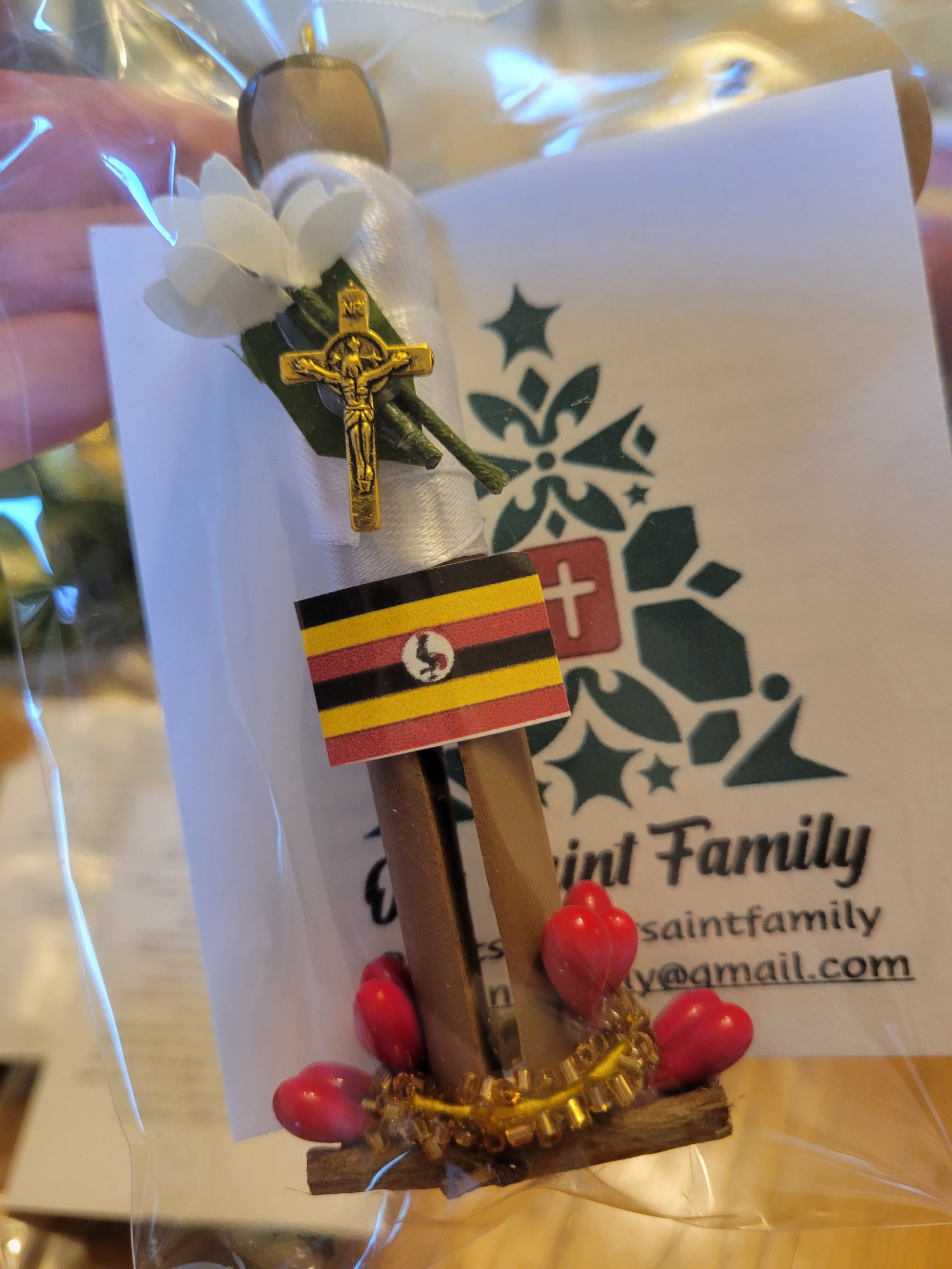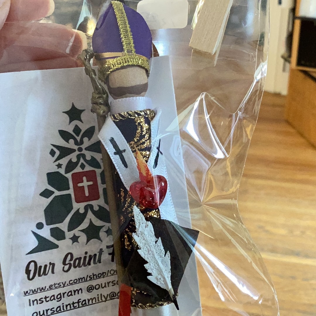 Each one is handmade locally. There are over 360 designs. Comes with card explaining who the saint was. We can order designs not currently stocked.