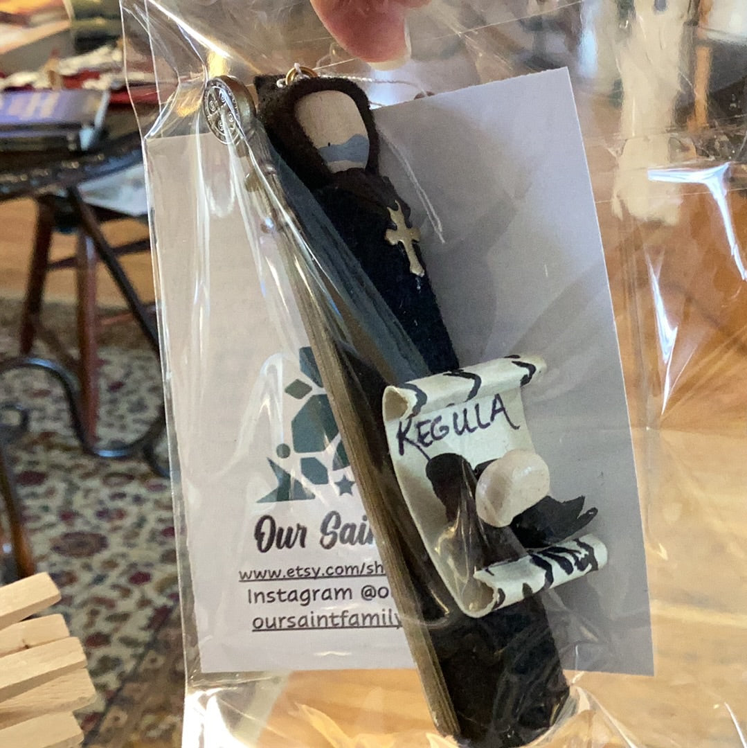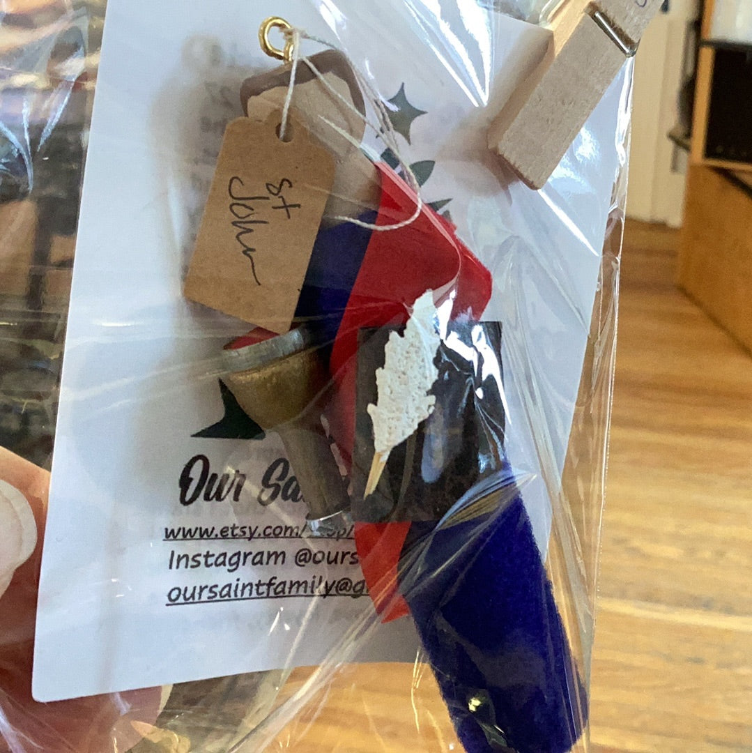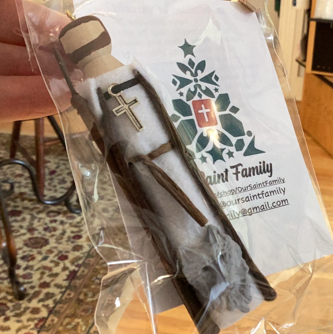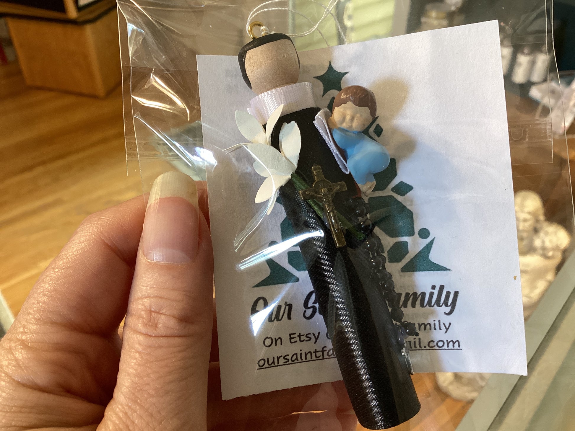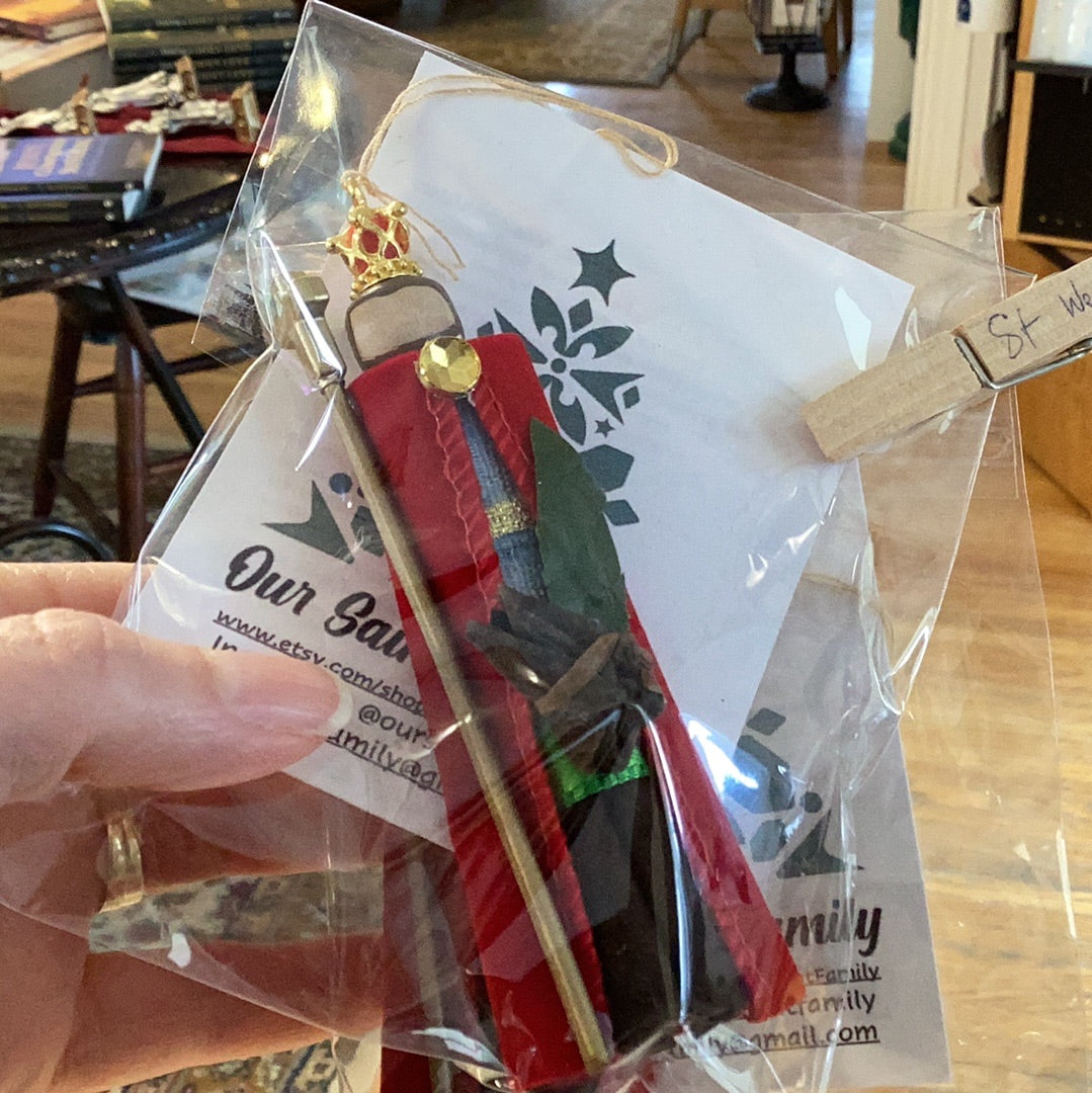 Each one is handmade locally. There are over 360 designs. Comes with card explaining who the saint was. We can order designs not currently stocked.