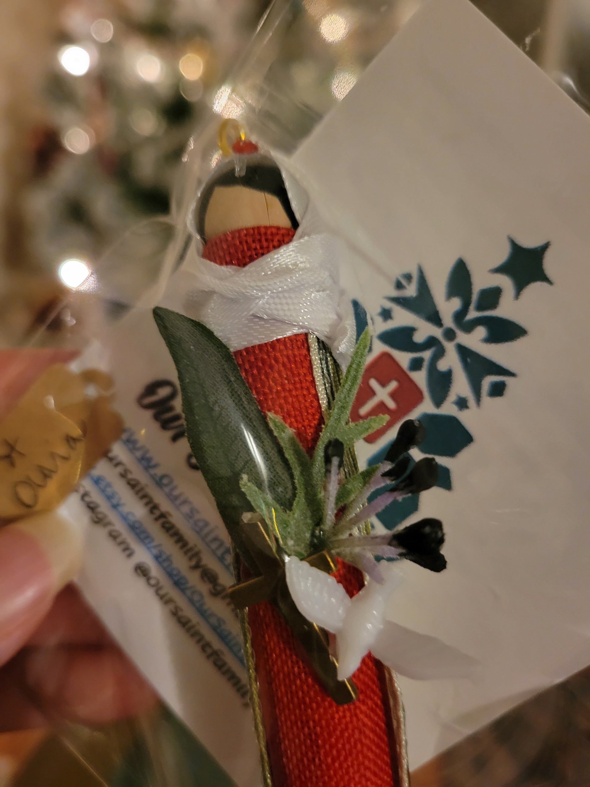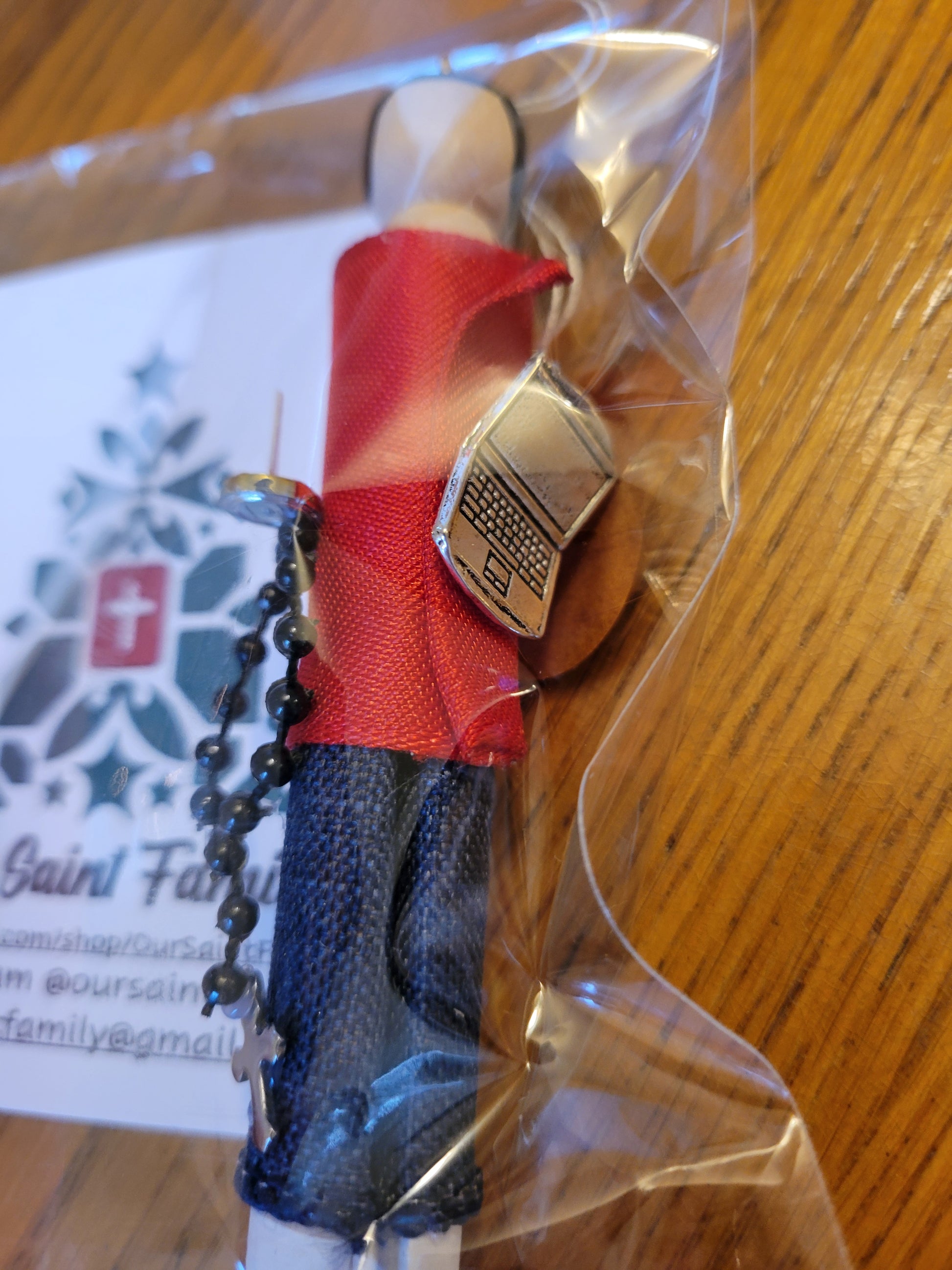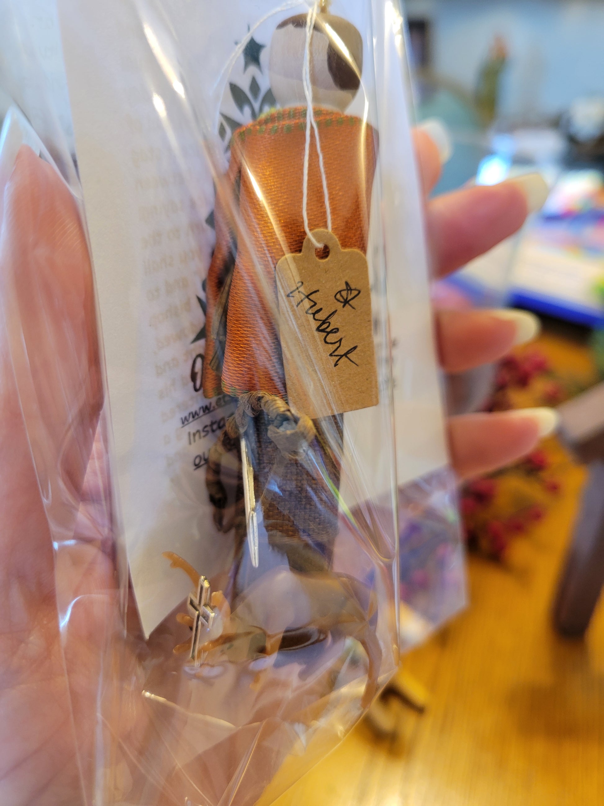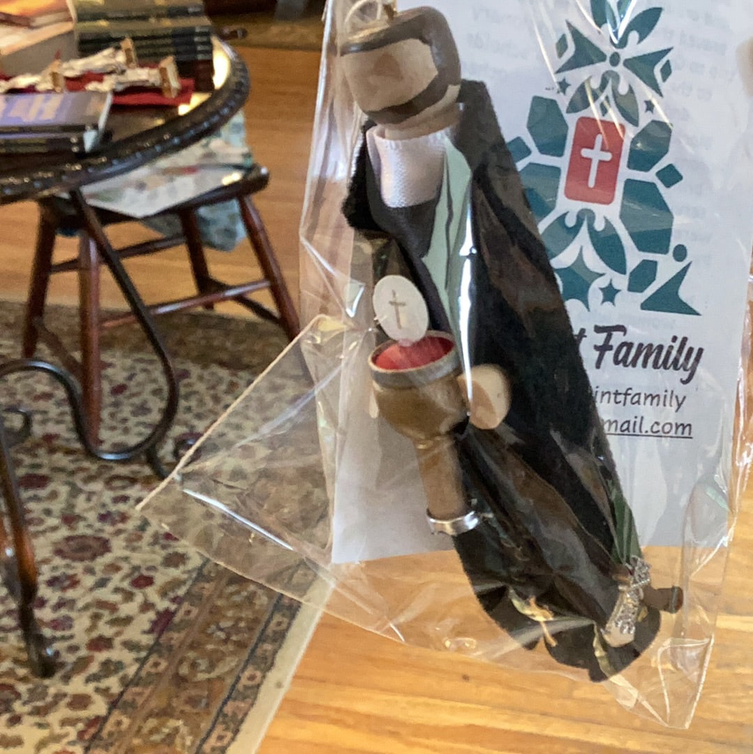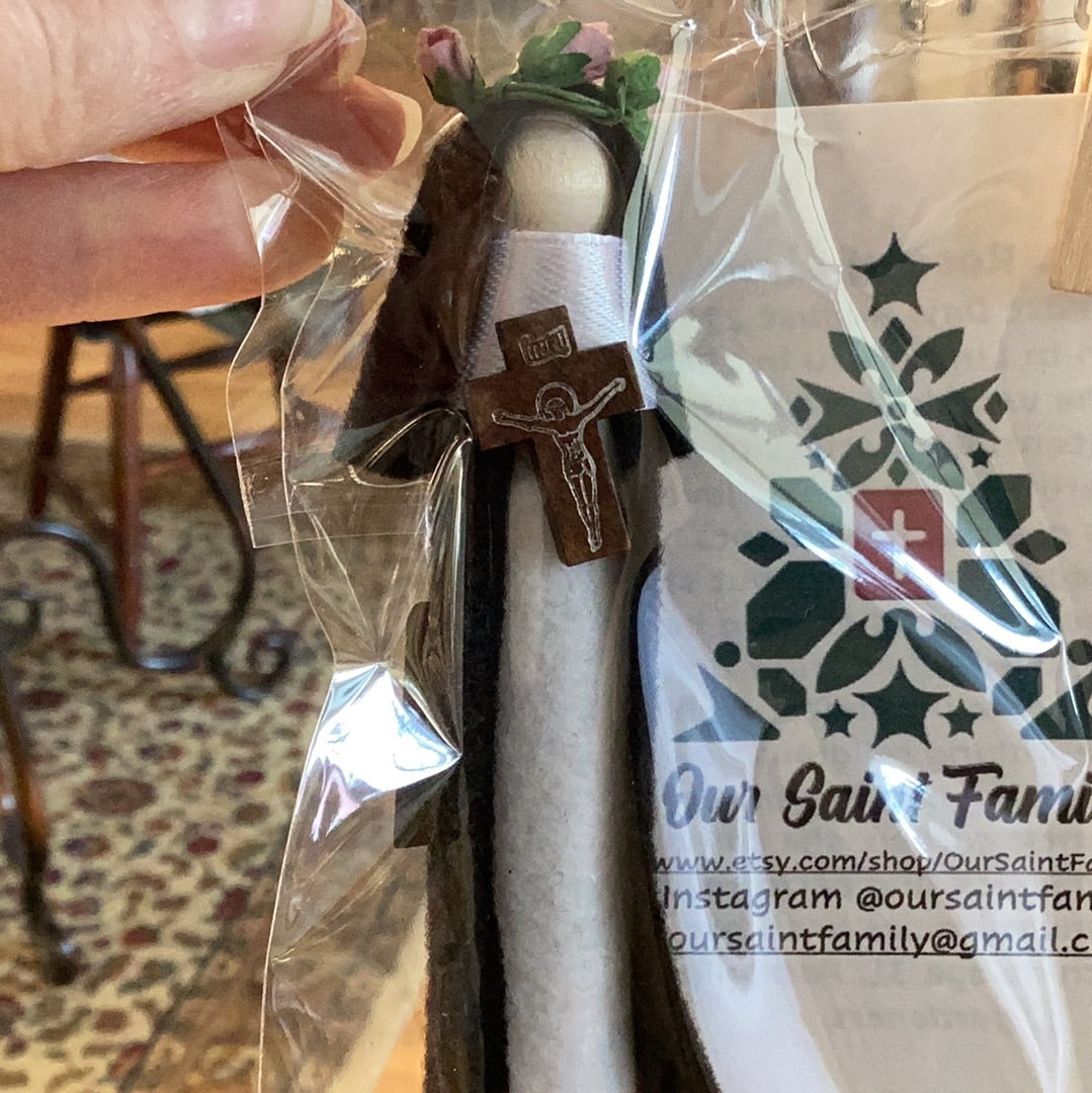 Each one is handmade locally. There are over 360 designs. Comes with card explaining who the saint was. We can order designs not currently stocked.