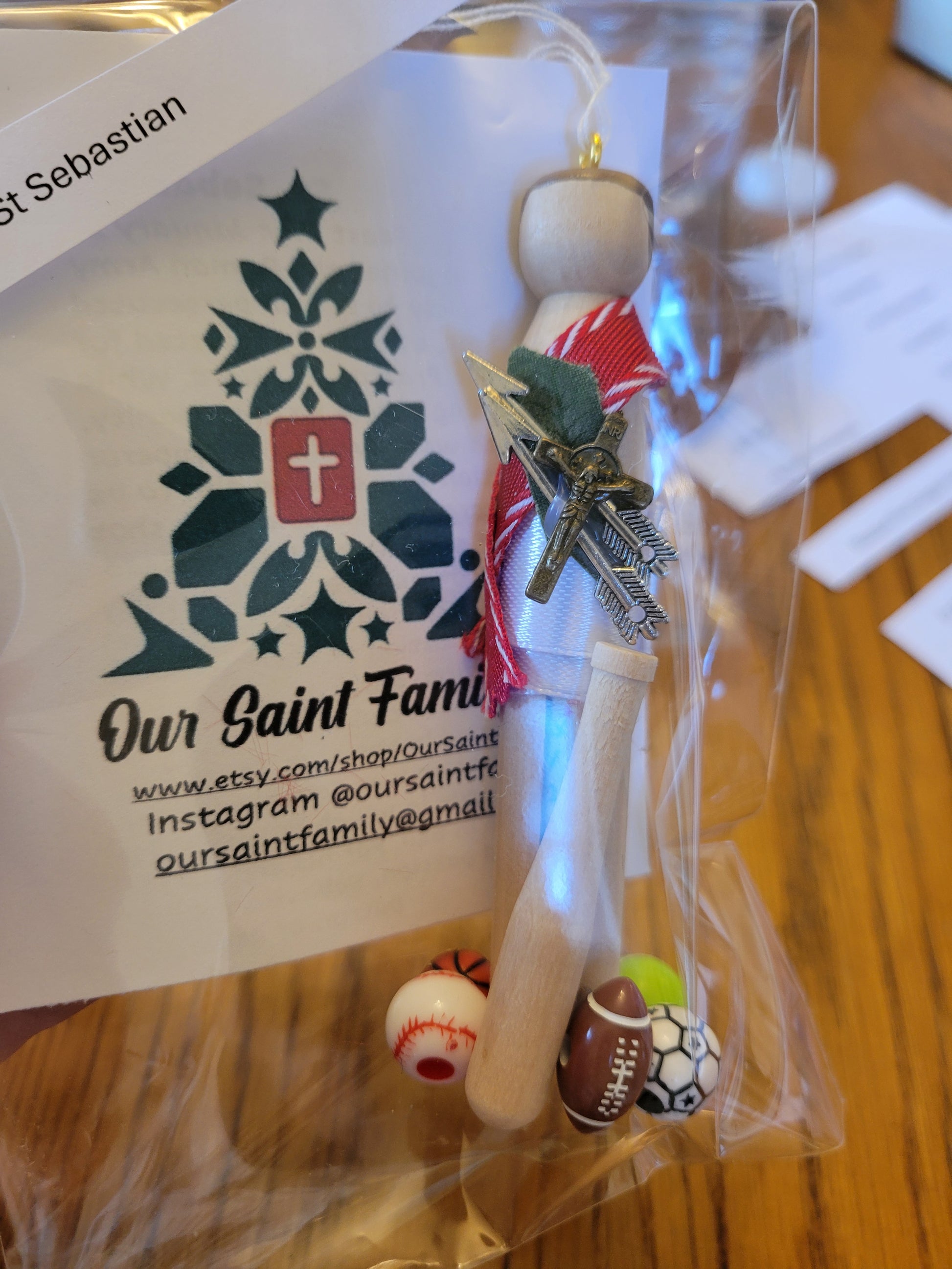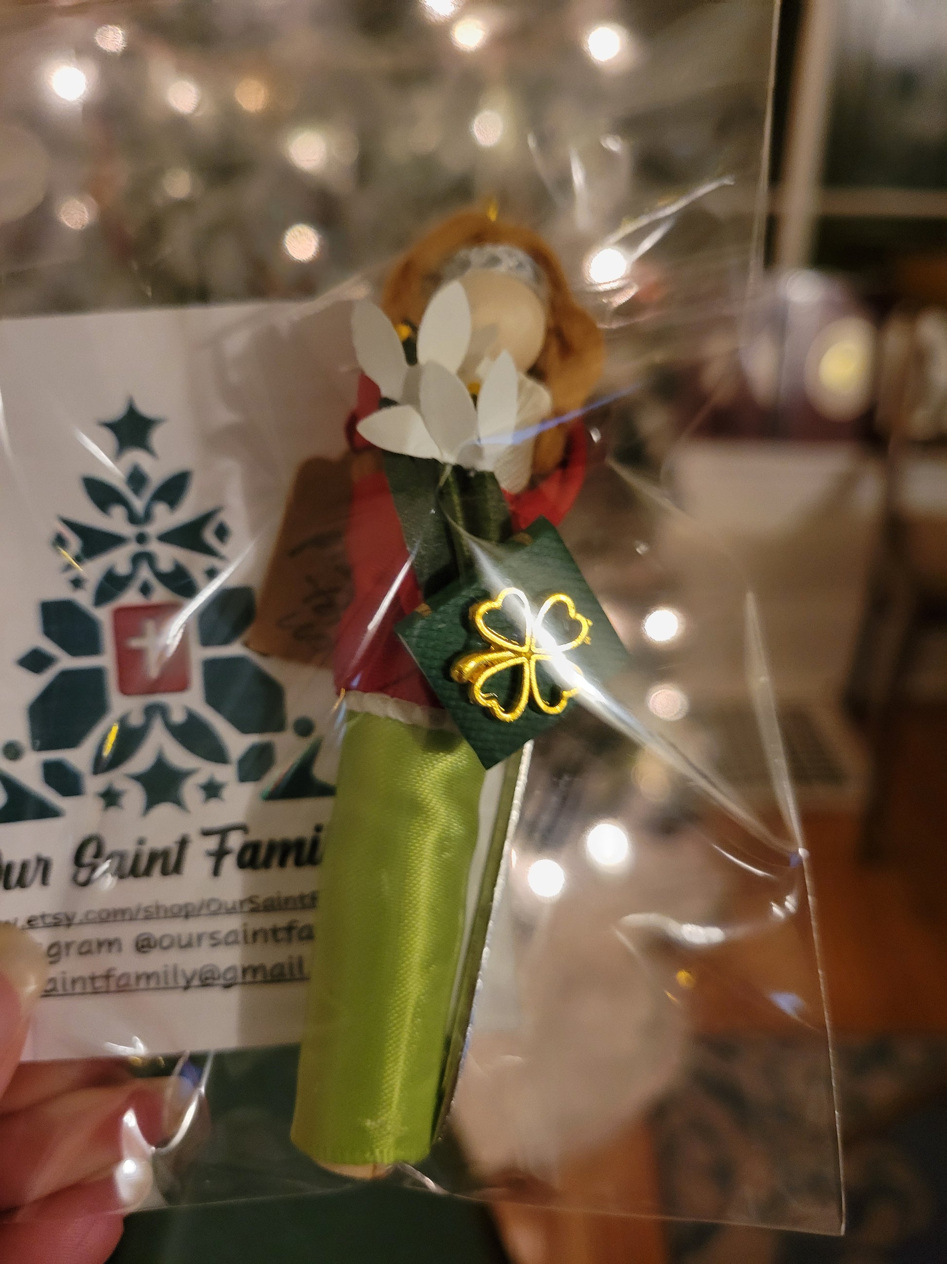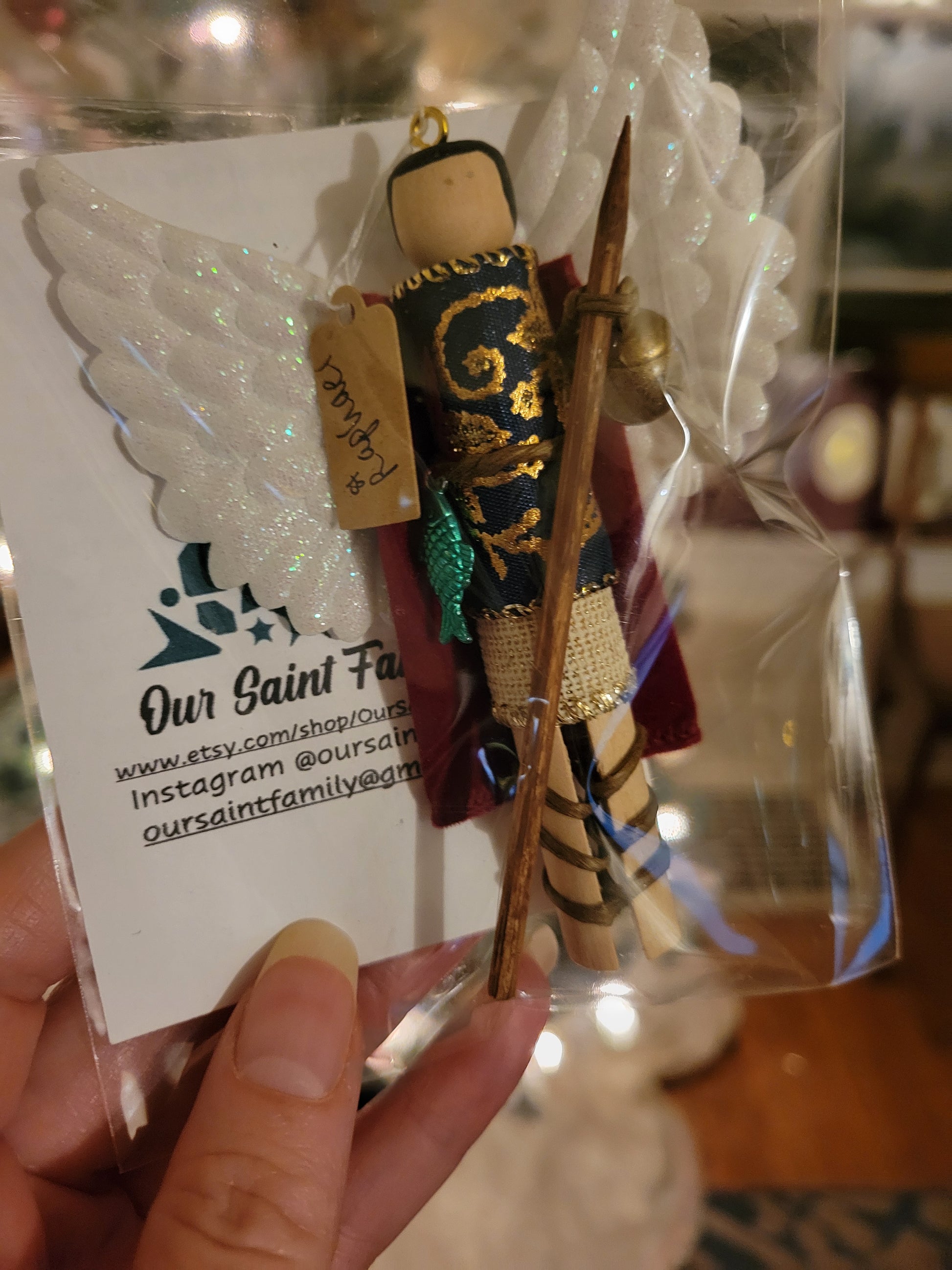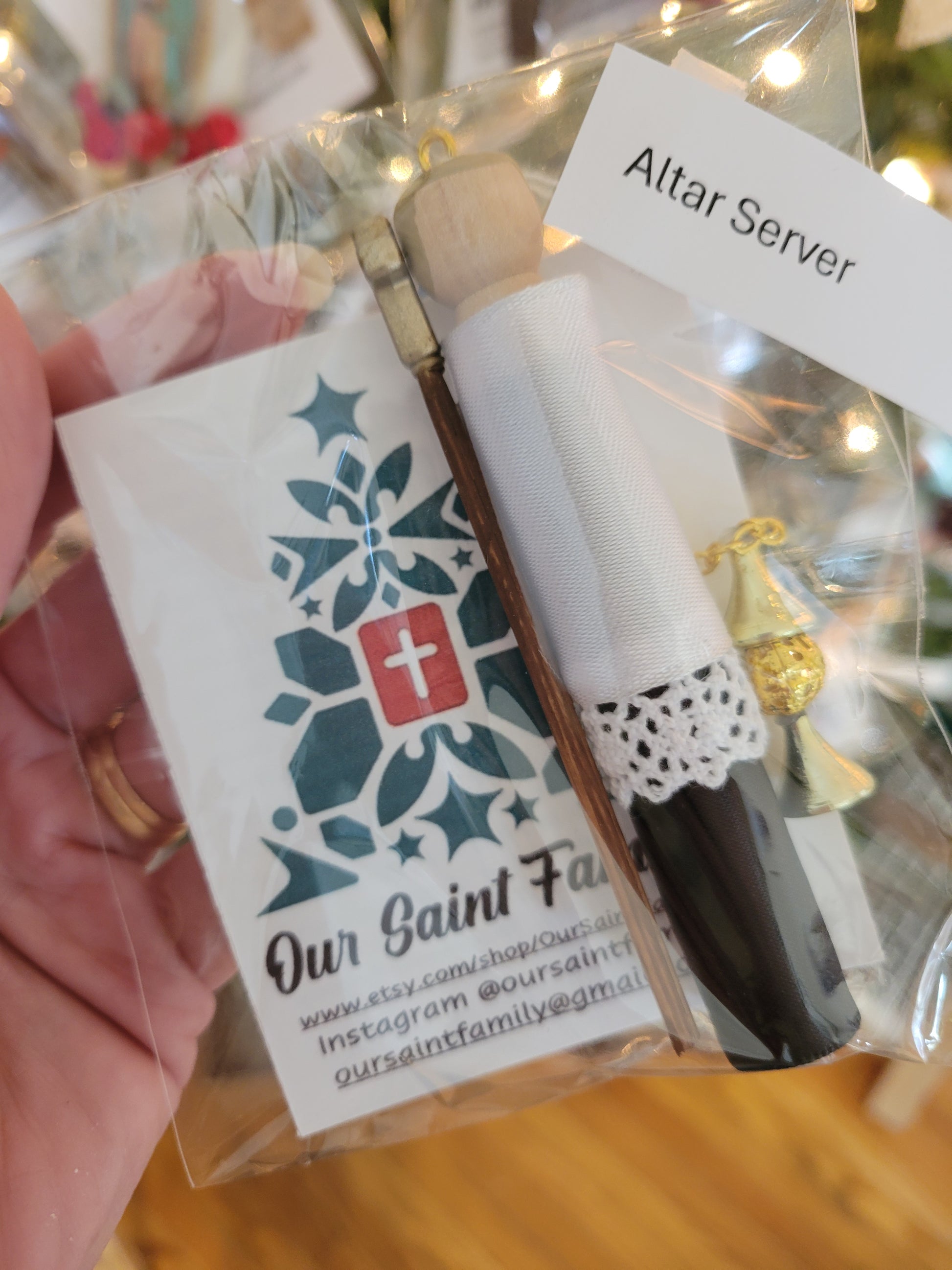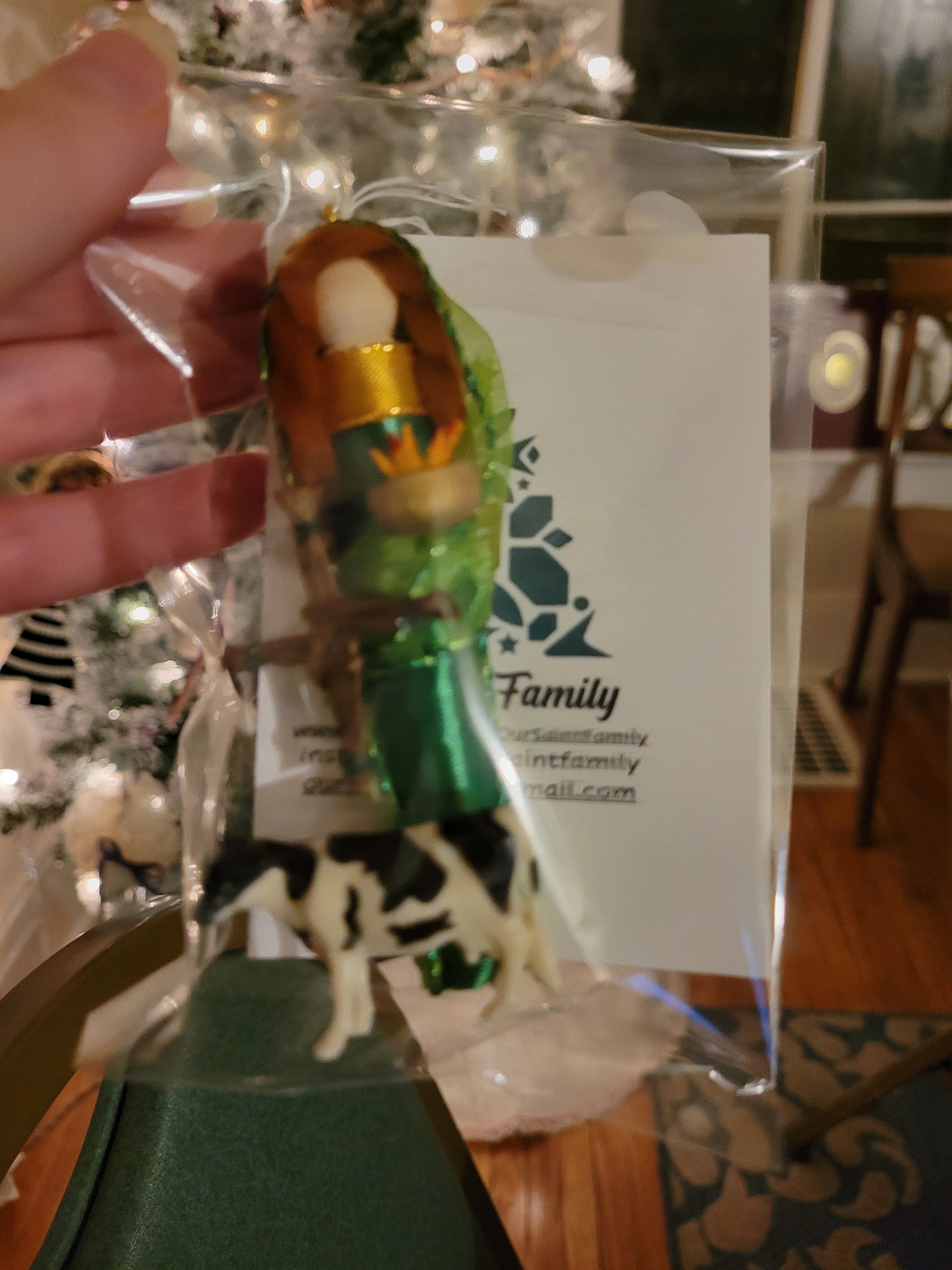 Each one is handmade locally. There are over 360 designs. Comes with card explaining who the saint was. We can order designs not currently stocked.