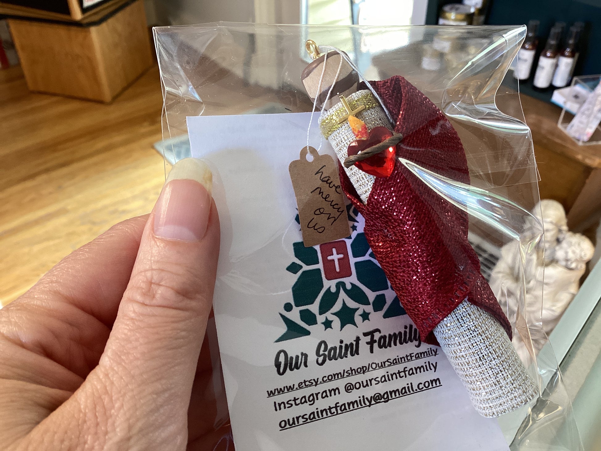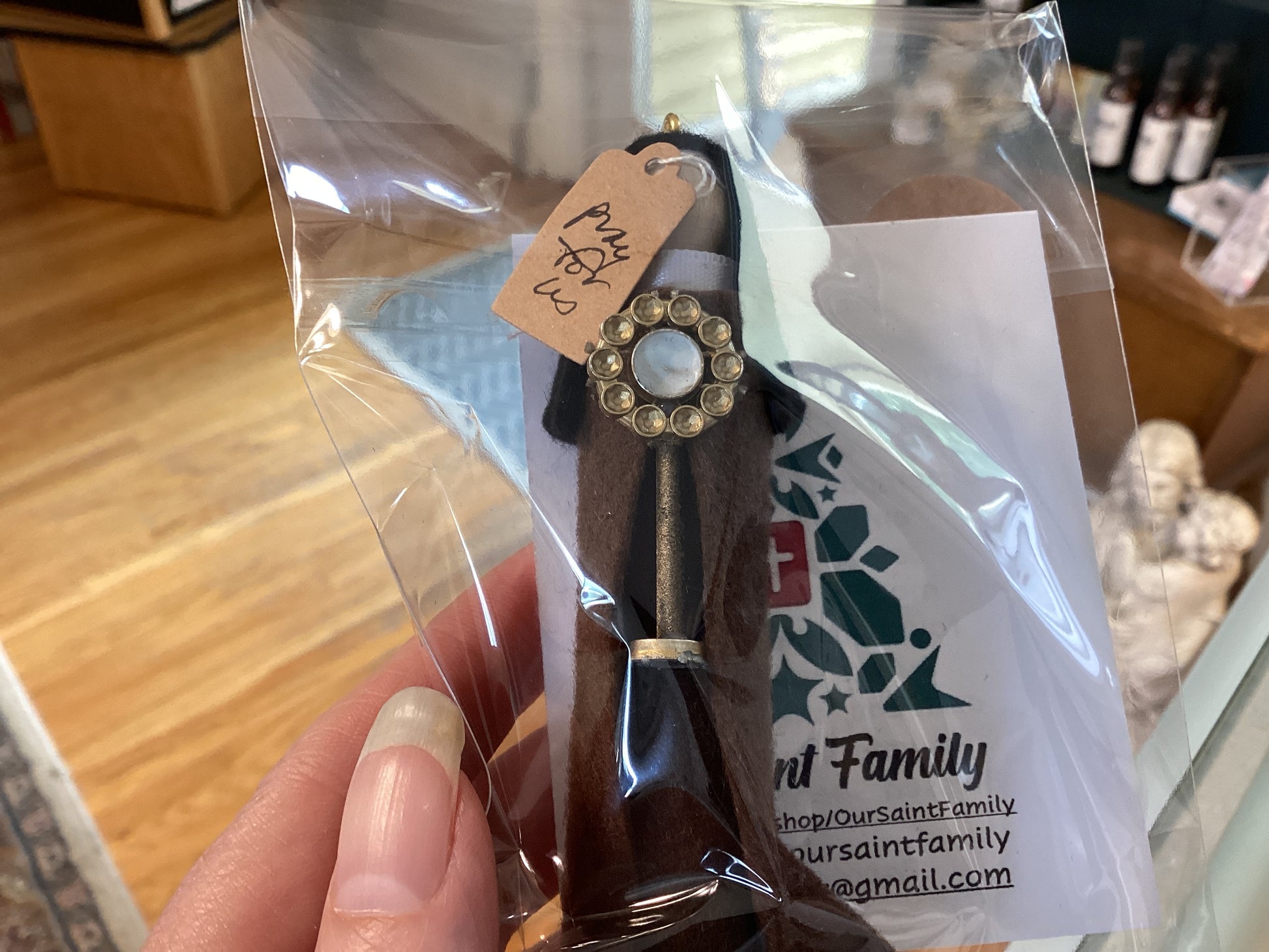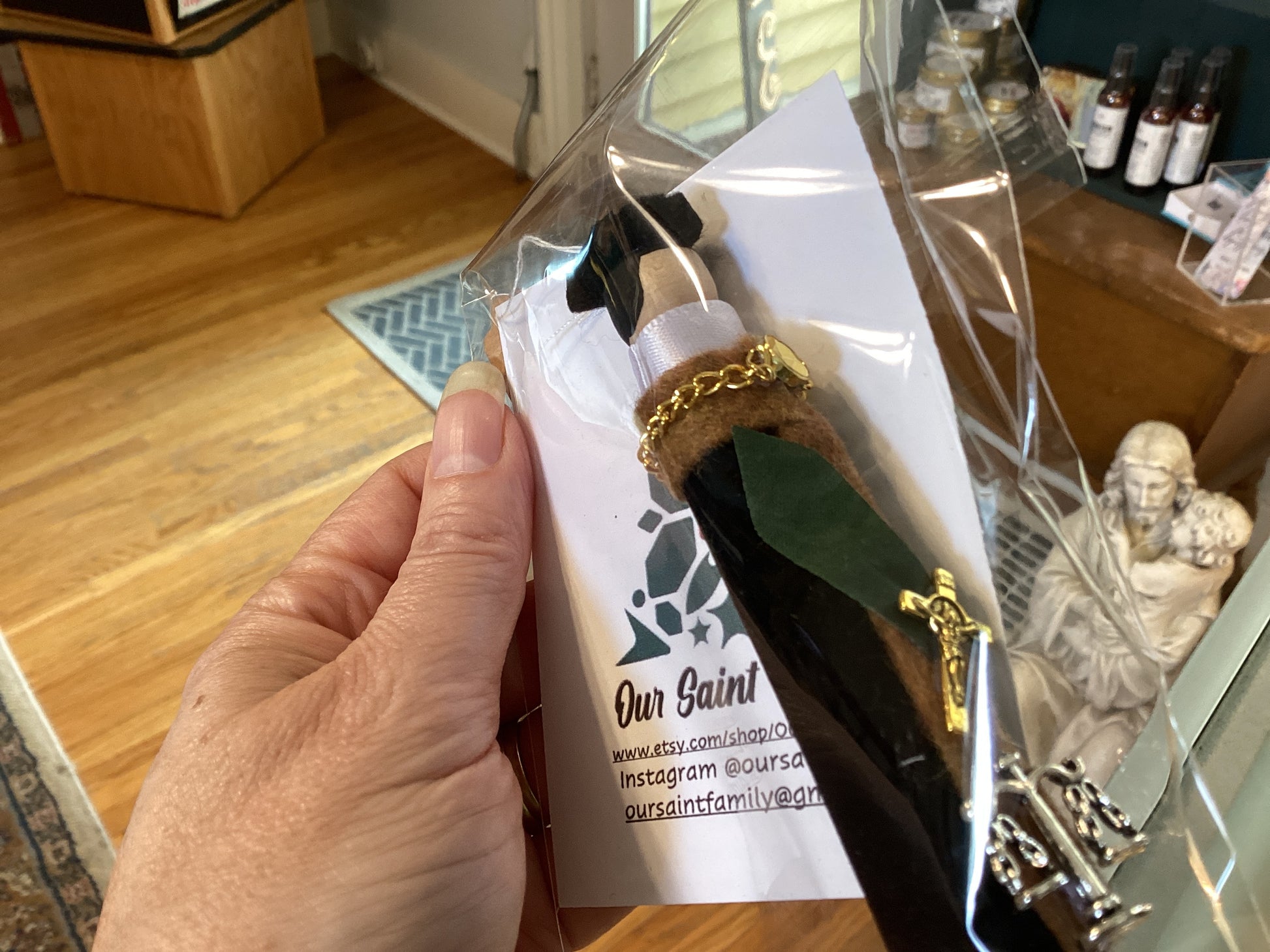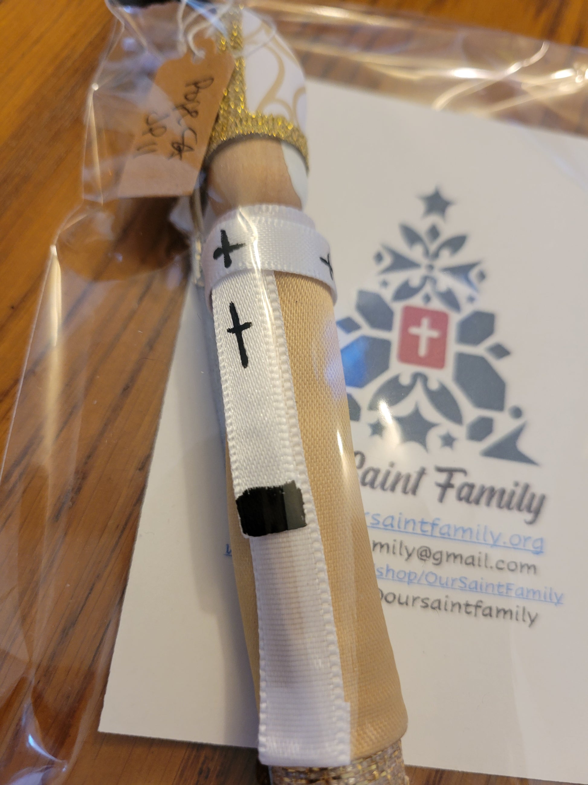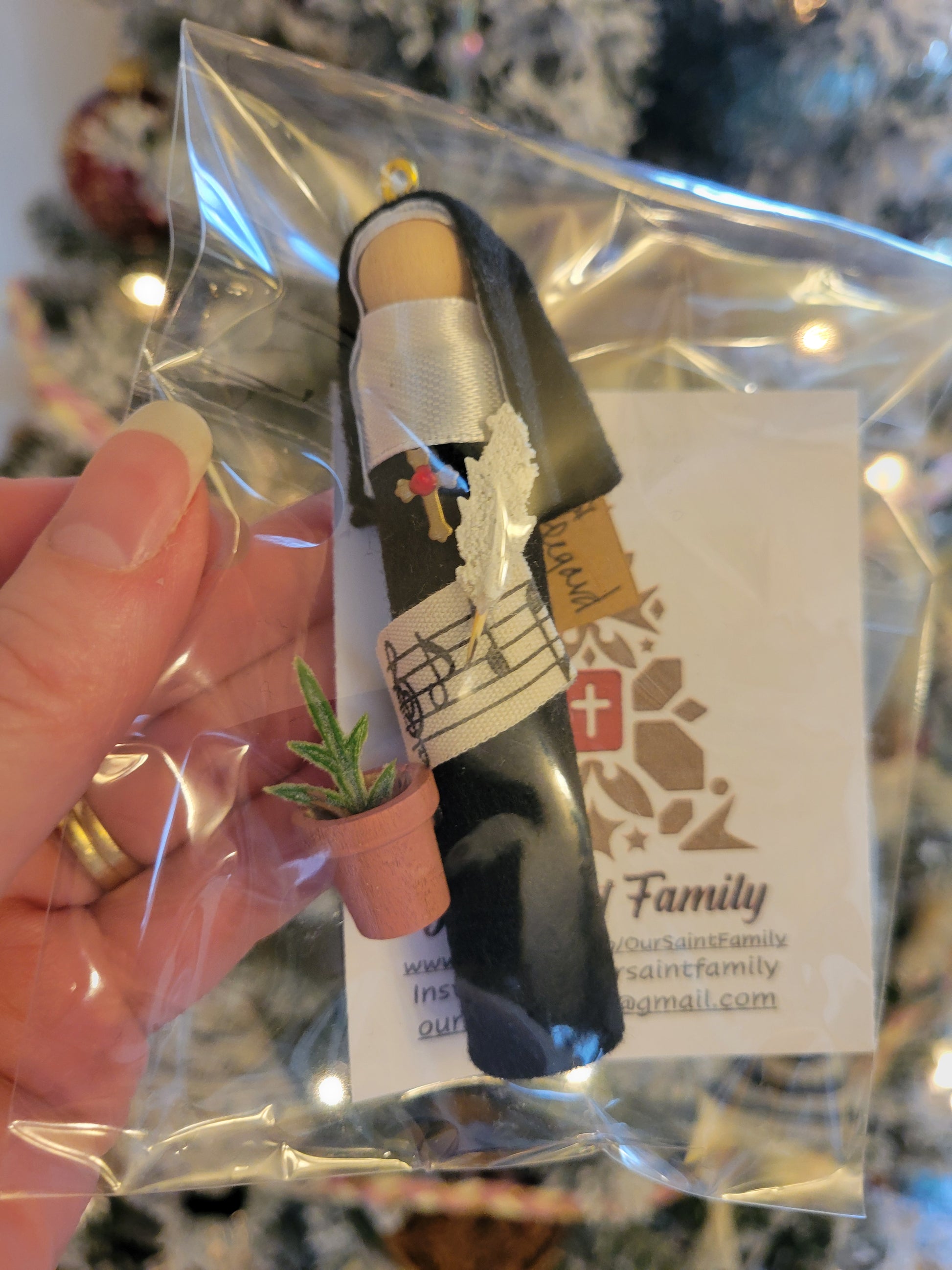 Each one is handmade locally. There are over 360 designs. Comes with card explaining who the saint was. We can order designs not currently stocked.
