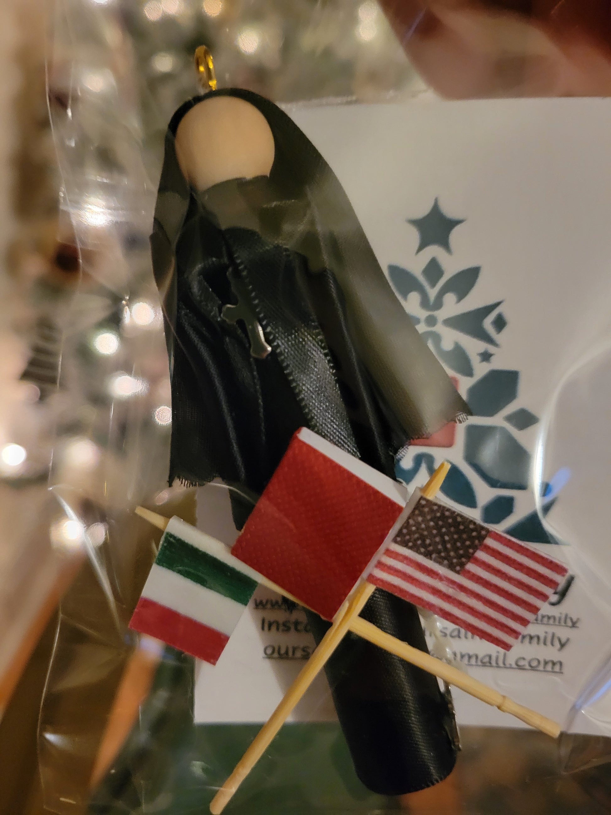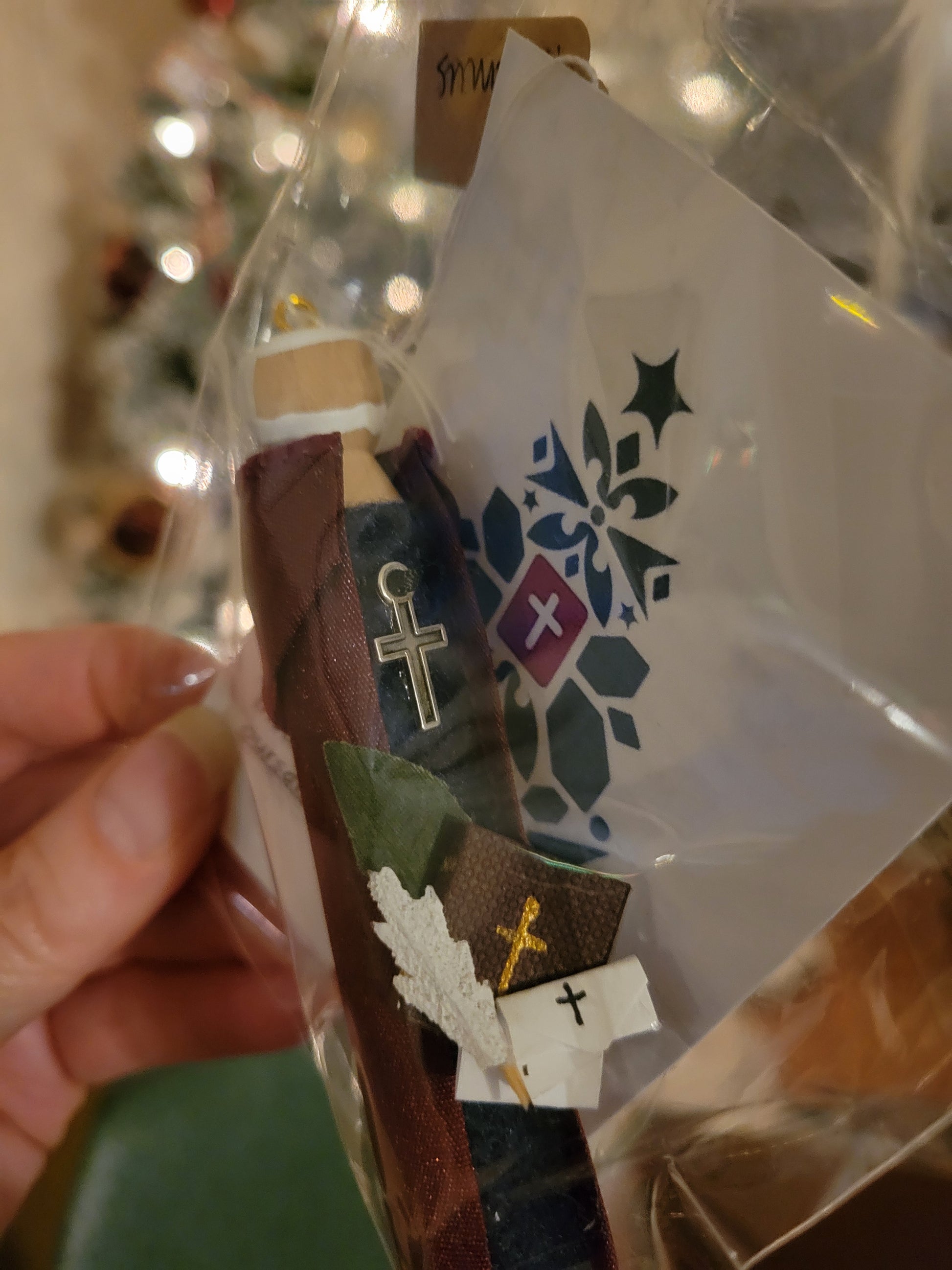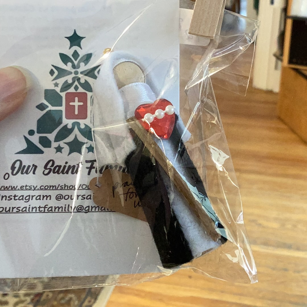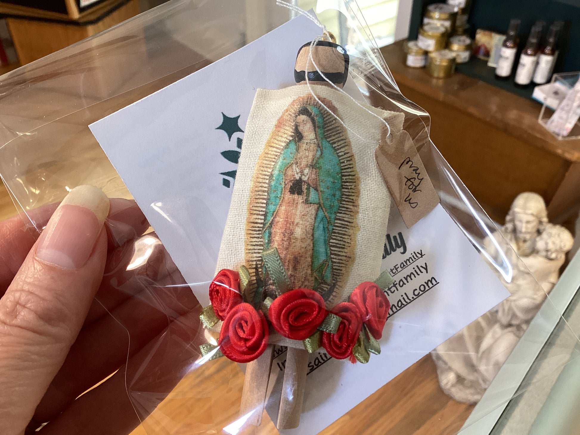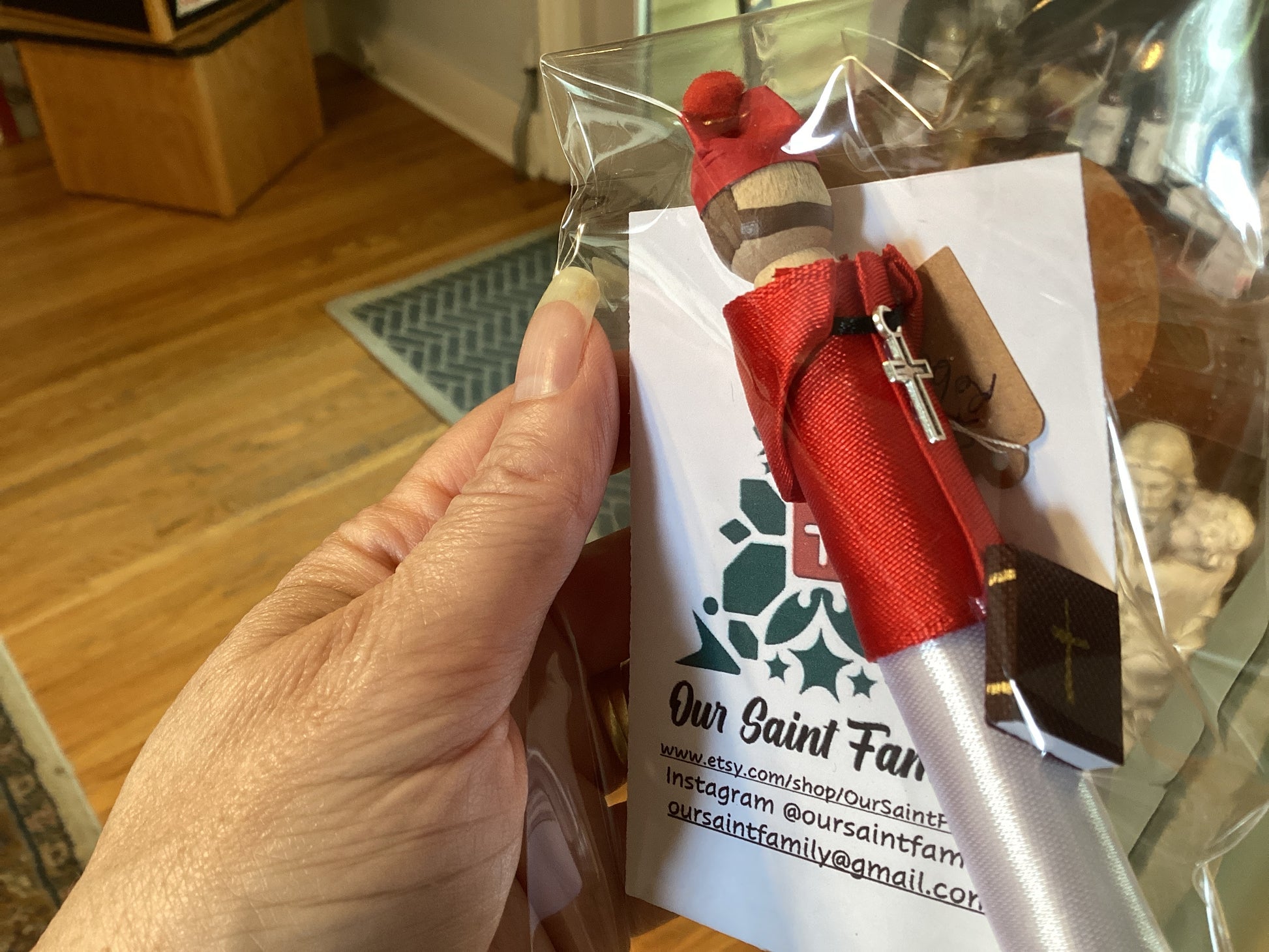 Each one is handmade locally. There are over 360 designs. Comes with card explaining who the saint was. We can order designs not currently stocked.