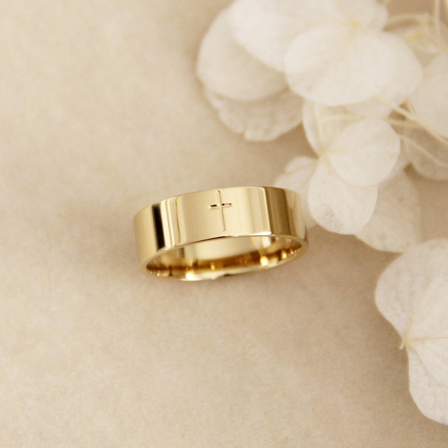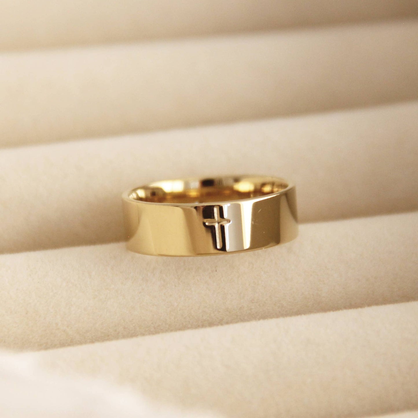 LoveStory Collection - Cross 6mm Band Ring, Wide Cross Ring, Christian Jewelry