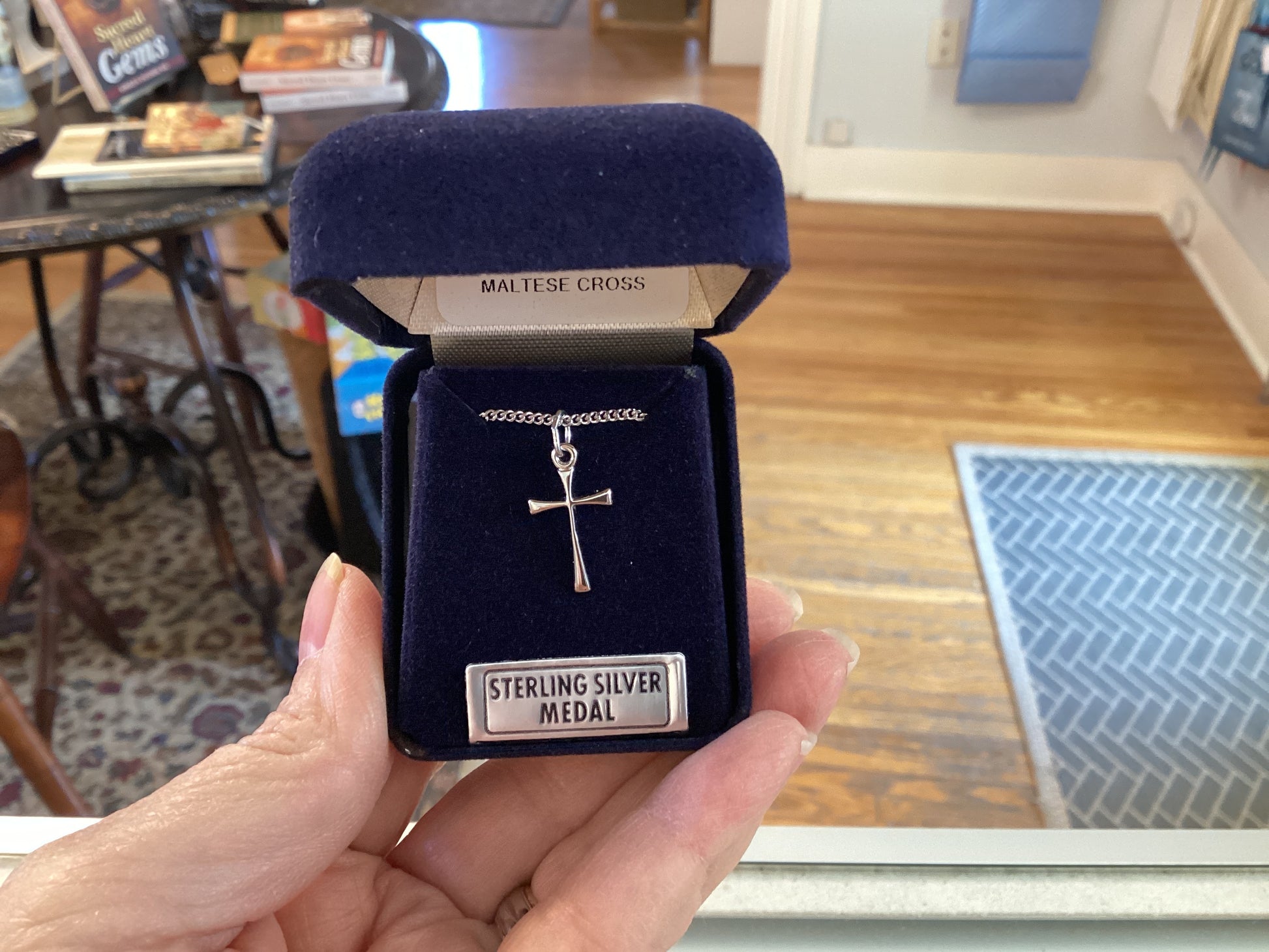 Gold Gfilled Maltese Cross Pendant on a 18 inch Gold filled Light Curb Chain.