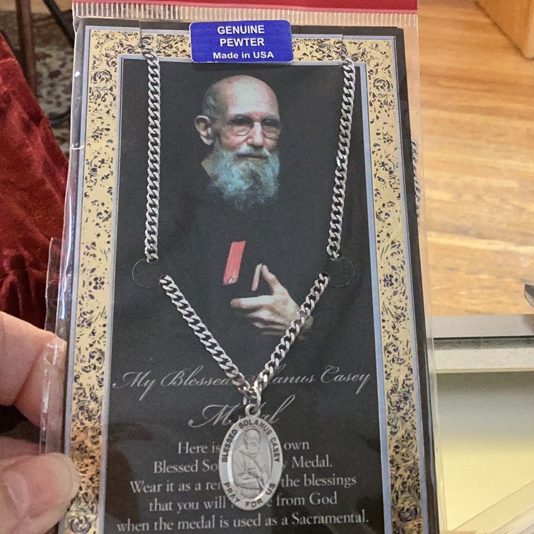 Genuine Pewter Saint Medal on stainless steel chain 18”/24”