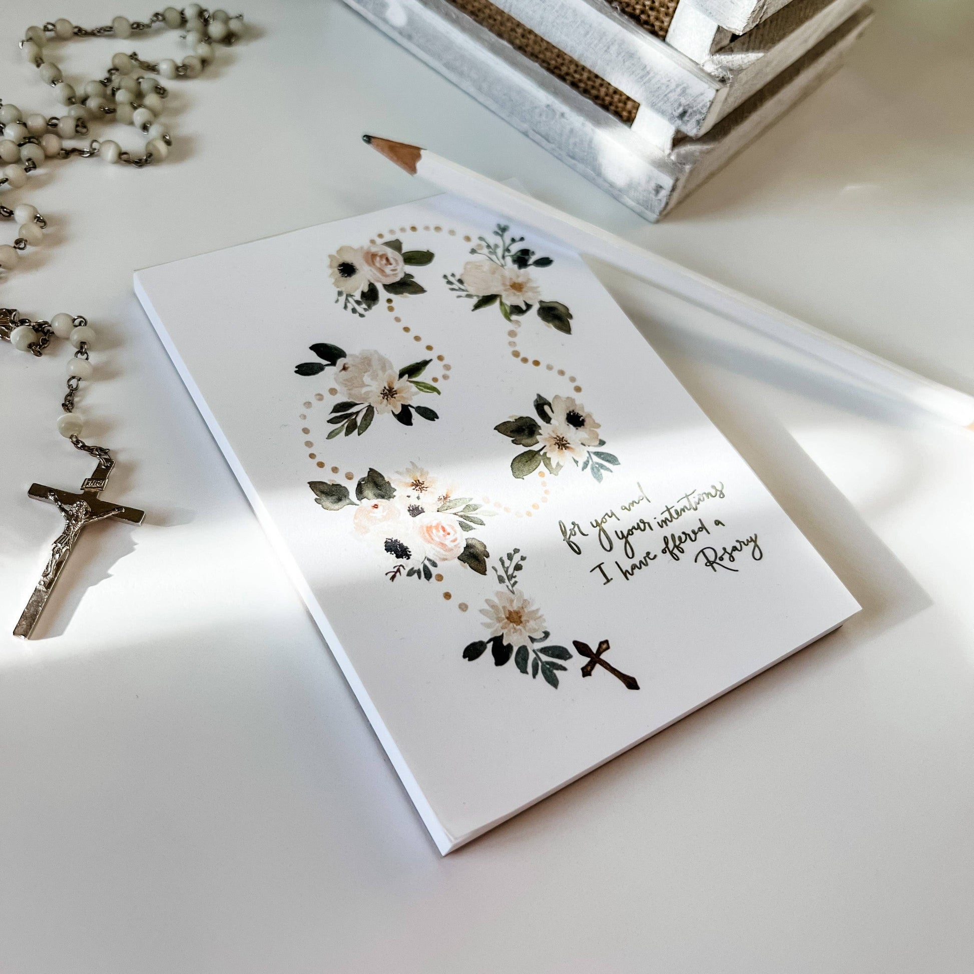 This beautiful notepad is designed to make it quick and easy to remember to offer your Rosary or other offerings for someone and to let them know by simply signing and gifting them a beautiful note.