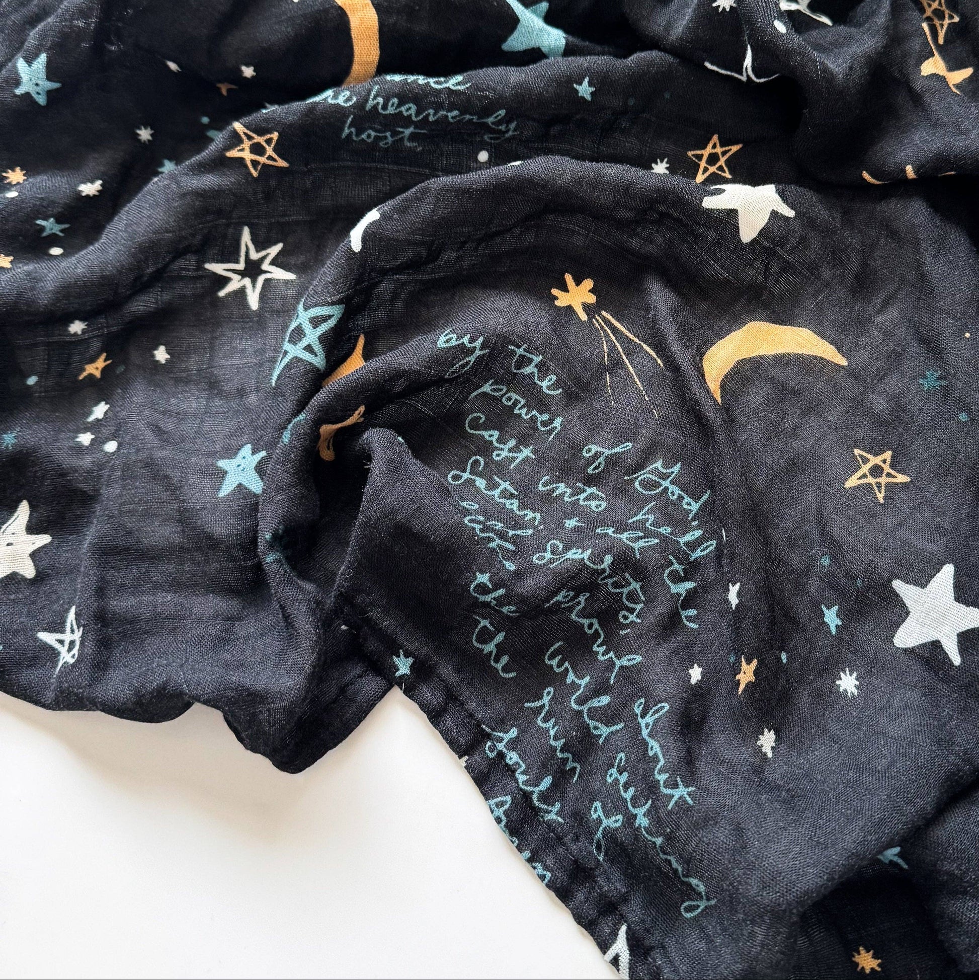 The Little Rose Shop - St. Michael Prayer - Catholic Baby Muslin Blanket Swaddle
