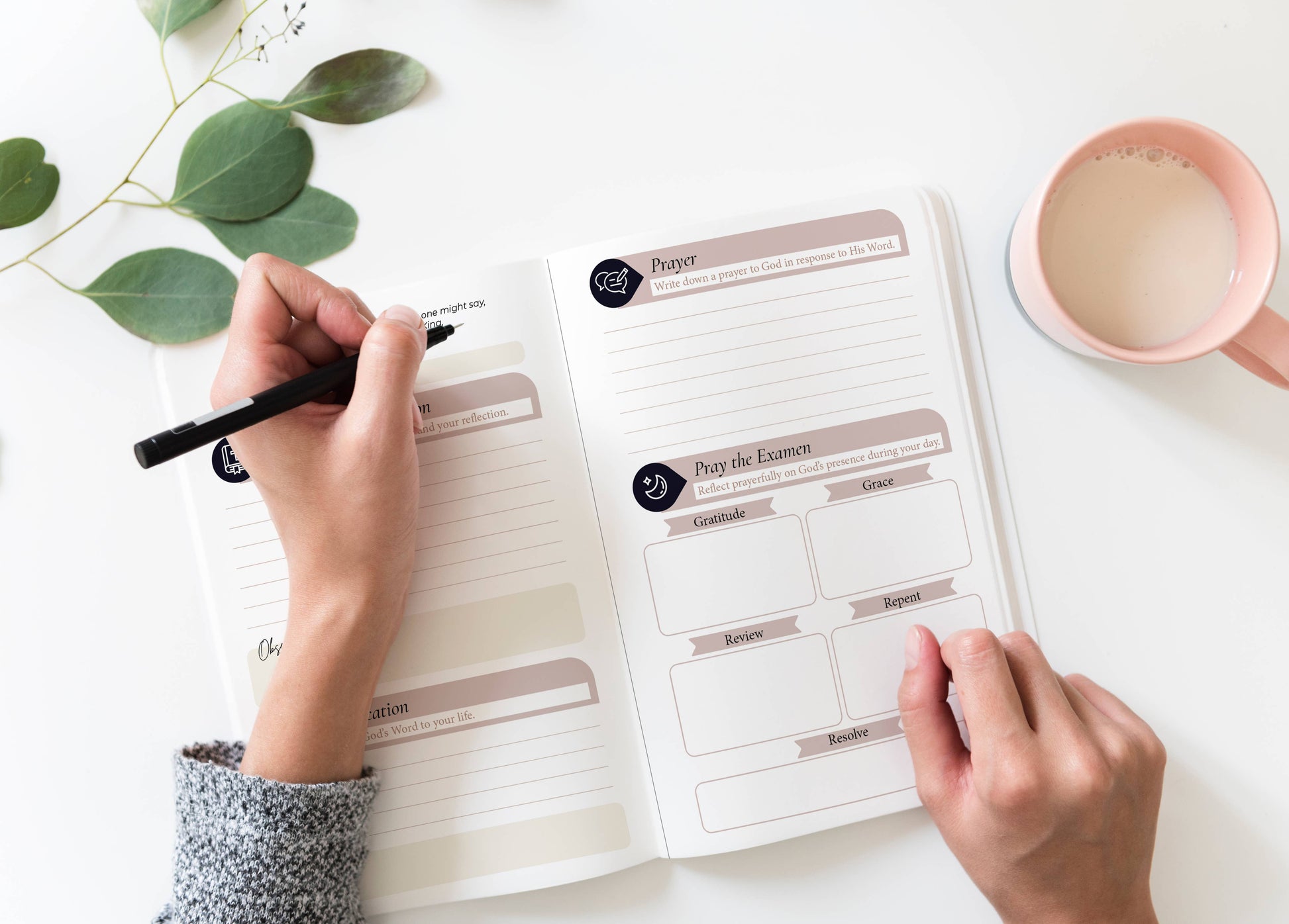 -The Examen of St. Ignatius of Loyola with entries for gratitude, grace, review, repent and resolve.